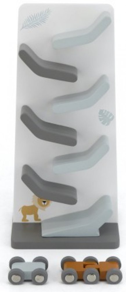 Tato zábavná autodráha stimuluje motorické schopnosti vašeho dítěte. Kličkující autíčka se prohánějí po dráze! Díky roztomilému potisku lvíčka a moderním barvám se autodráha stane v dětském pokoji skutečným lákadlem pro vaše ratolesti.