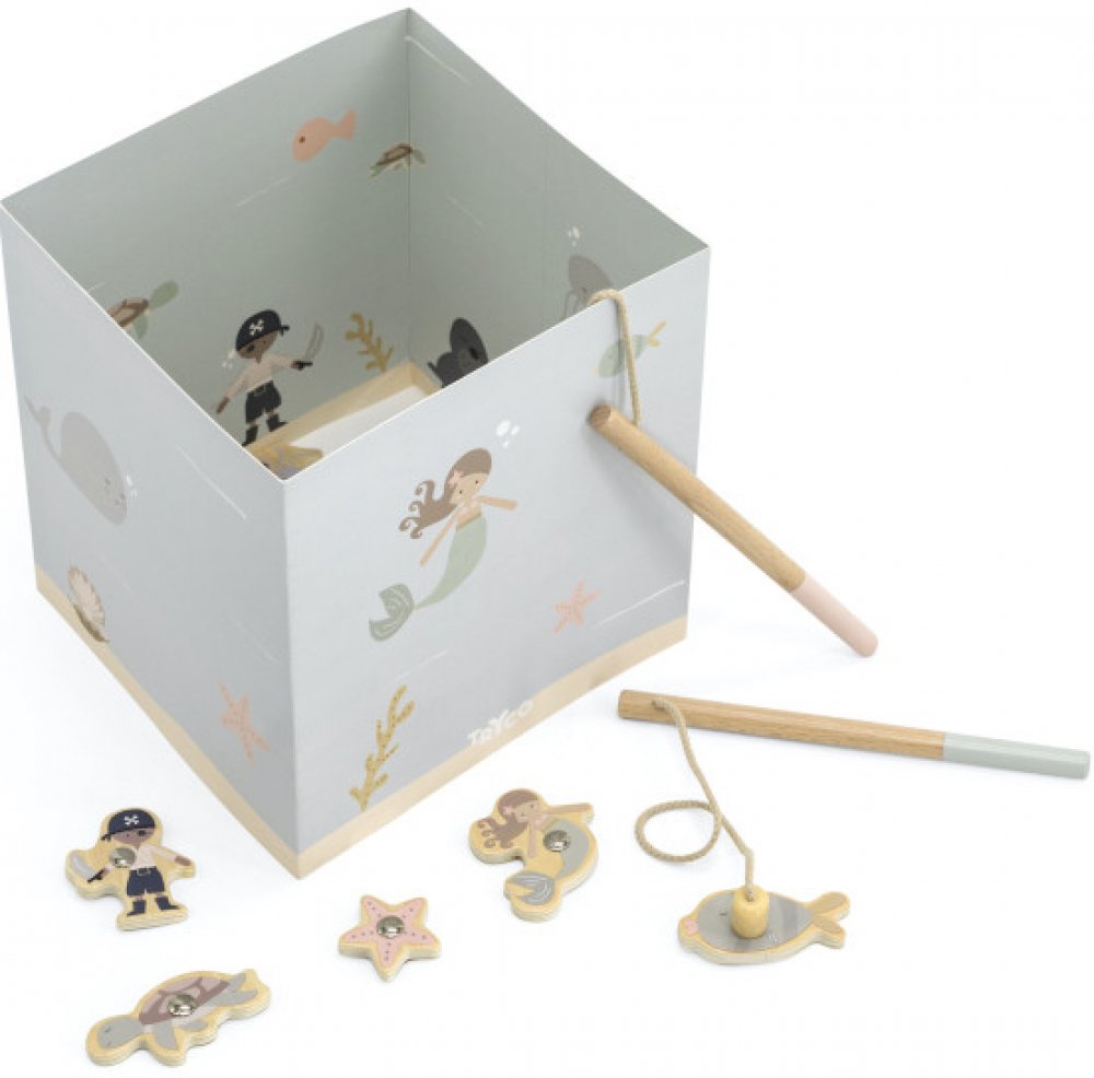 Dřevěná hra na rybaření Tryco obsahuje barevnou krabici s motivem moře, proutek s magnetem a dřevěné figurky. Pomocí prutu se pak dítko snaží ulovit co nejvíce figurek. A vylovit může opravdu mnoho. V papírovém oceánu Tryco totiž plavou nejen ryby, ale i mořské panny, želvy a boty. Chytáním rybiček děti trénují koordinaci očí a rukou, posilují trpělivost a jemnou motoriku. Klíčové vlastnosti dřev...