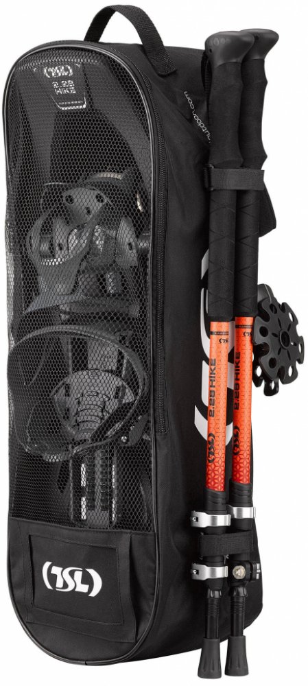 Sněžnice a hole pro pravidelné turisty, aby se nebořili do sněhu nebo neklouzali. Sněžnice značky TSL vyrobené ve Francii nabízí skvělý poměr cena/výkon. Jednoduché, odolné a s vynikající přilnavostí.Vhodné na začátky s chůzí na sněžnicích v nenáročném terénu. Kompletní sada obsahující sněžnice, transportní obal a turistické hole. Před nazutím: sněžnice je jedna levá a jedna pravá, ujistěte se, že si je nasazujete správně. Navede vás piktogram na rámu sněžnice. Nastavení: správné nastavení a utažení sněžnic je důležité pro bezpečnou chůzi. 1) Noha musí doléhat k zarážce (přední i zadní), aby bylo zaručené optimální zpevnění. 2) Popruhy nebo přezky (v závislosti na modelu) musejí být maximálně utažené.|Sněžnice se standardně vybírají dle váhy uživatele (ke které příp. připočtěte i váhu batohu). Jedině tak se nebudete propadat příliš hluboko. Jedná se o tzv. vztlak, příp. nadnášivost. Sněžnice se vyrábí v několika velikostech a provedeních, aby co nejlépe odpovídaly různým požadavkům jejich uživatelů. Naše doporučení: