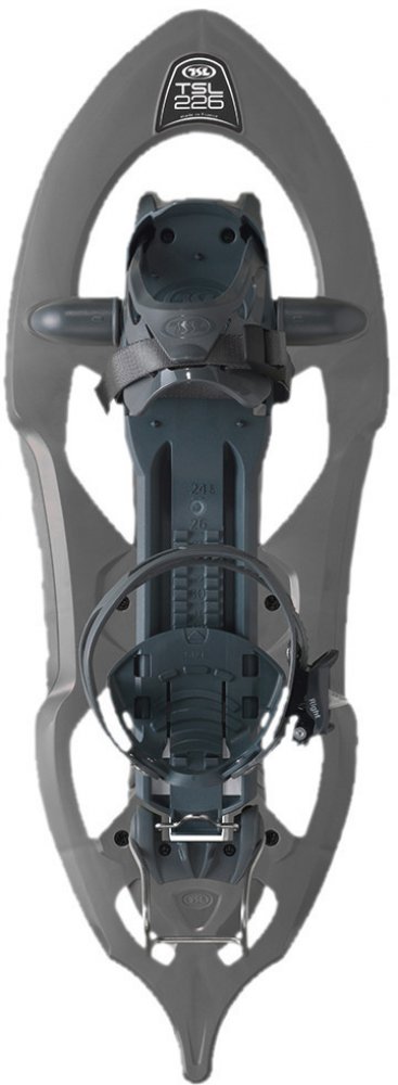 Sněžnice jsou vyrobeny z velmi kvalitního a tvrdého kompozitu, díky tomu jsou dostatečně pevné i v silných tuhých mrazech. Sněžnice je osazena šesti ocelovými hroty a předním drapákem. Vázání sněžnic lze snadno a rychle nastavit za pomoci ráčny (stejně jako na snowboardu) v oblasti nártu a řemínku v přední části. Díky tomu lze vázání upravit i v rukavicích. V případě strmějšího svahu lze využít nastavitelnou podporu paty Heel Lift. Během přepravy či skladování lze naopak využít fixaci paty Heel Block. Dále jistě oceníte Sound and Shock absorbing System (SSAS), tento systém je speciálně vyvinut firmou TSL a napomáhá pohlcovat nežádoucí zvuky a otřesy, v praxi to tedy znamená pohodlnou a tichou chůzi. Součástí balení je i praktická taška na přenášení sněžnic.