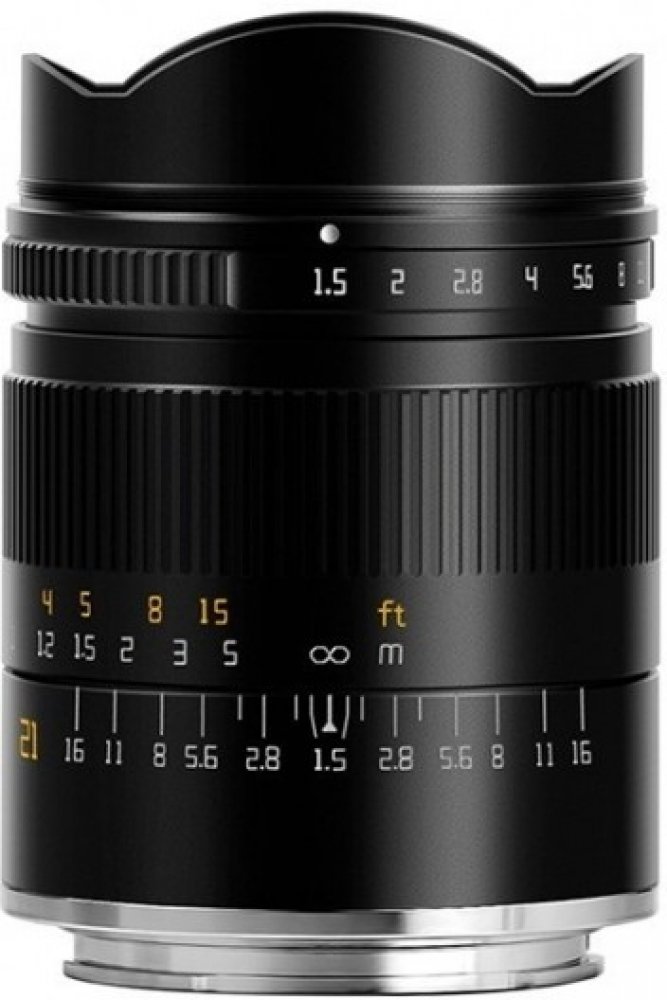 Plně manuální Full Frame objektiv TTArtisan 21mm f/1.5 ASPH.Technické parametry:Formát: Full Frame / APS-COhnisková vzdálenost: 21mmOptická konstrukce: 13 členů / 11 skupinClonový rozsah: f/1.5 - f/16 (plynulý chod)Počet lamel clony: 10Min. vzdálenost: 0.5mPrůměr filtrů: 72mm (s adaptérem)Zorný úhel: 92° (Full Frame)Zaostřování: manualRozměry (max. průměr x délka): 56 x 77 mmHmotnost: 458gBajonet:...
