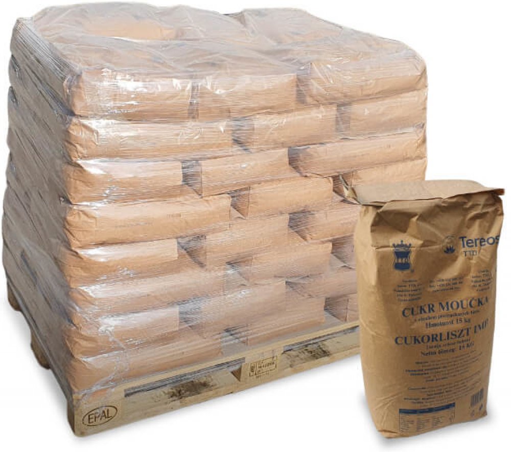 Odběr v ČB celoročně | Zasíláme pouze po platbě předemCukr moučka je sypká směs rozdrcených krystalů bílé barvy, sladké chuti a charakteristické vůně. Je přírodním sladidlem. Jedná se o sacharózu vyráběnou z cukrové řepy. Dodáváme v balení 15 kg – balení s protihrudkovými látkami tzv s amilínem. Je vhodné pro cukráře a pekaře. TTD Tereos, CZ