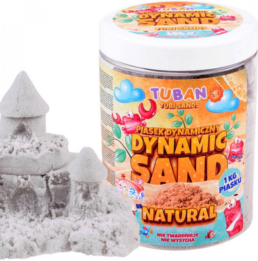 Přírodní písek od značky Tuban je kinetický písek, který se snadno tvaruje, netvrdne a snadno se čistí. Ideální pro zábavné hraní doma nebo ve škole. Je bezpečný a opakovaně použitelný.Výhody dynamického písku:krásná živá barvanedrolí seopakovaně použitelnýhypoalergenní a bezpečný pro malé dětinešpiní rucevhodné od 3 letSada obsahuje:1 kg přírodního kinetického písku