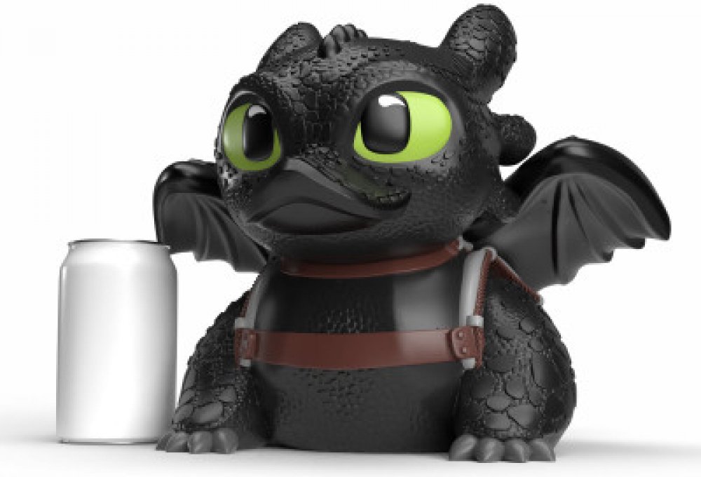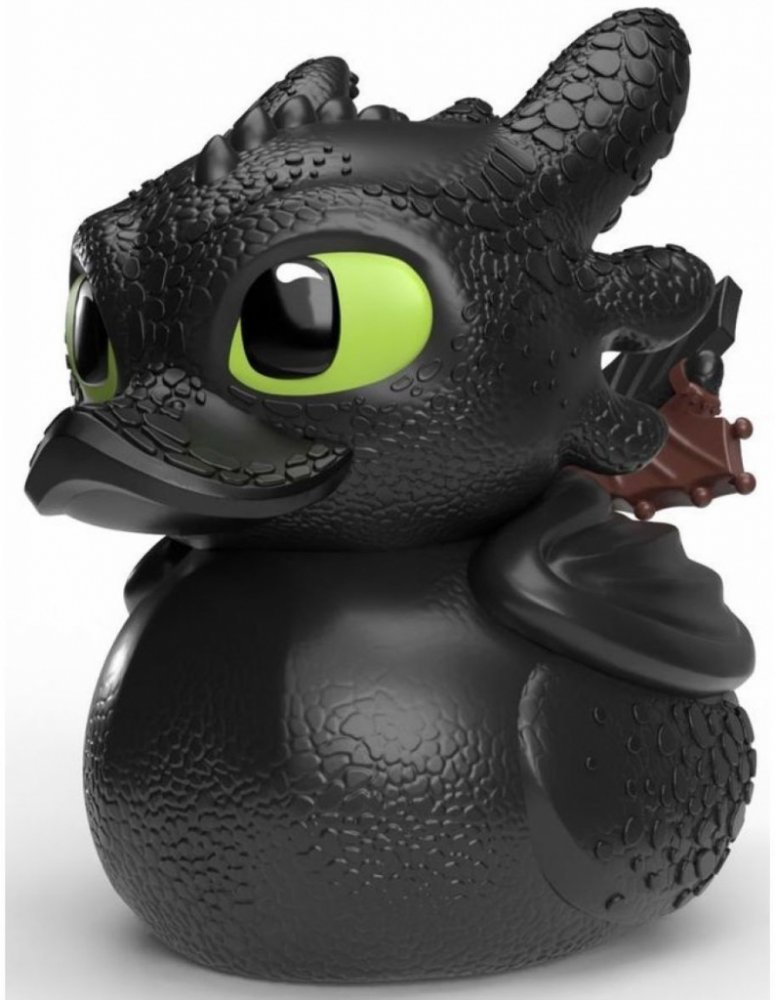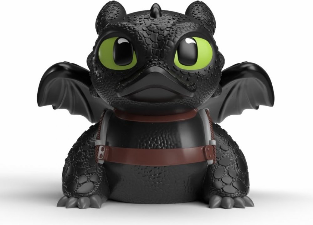 Tato kachnička ve stylu cosplay zobrazuje ikonického draka Bezzubku z filmové série Jak vycvičit draka.