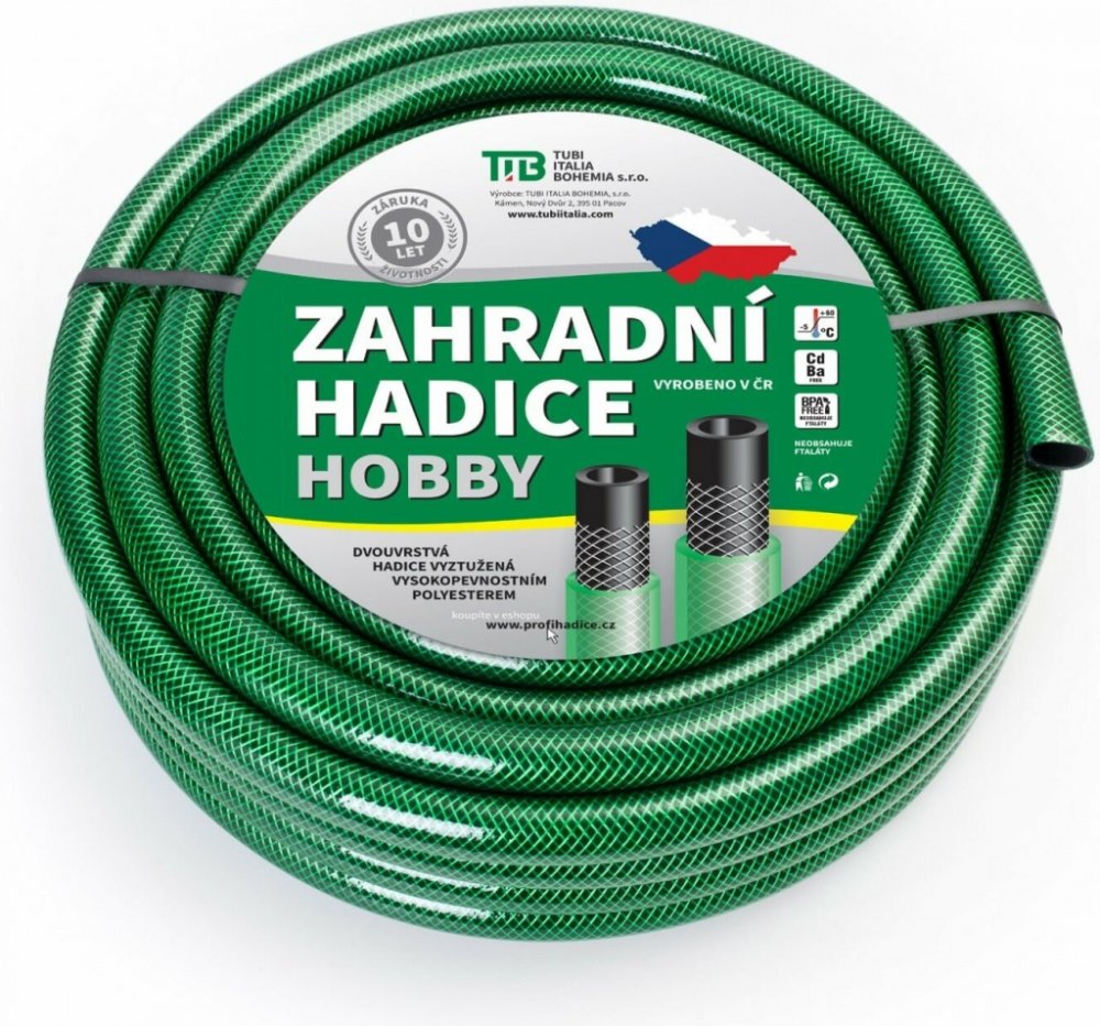 Zahradní hadice s černou vnitřní vrstvou, vyztužená PES vláknem. Neprůhledné provedení zabraňuje tvorbě řas. Zesílená stěna zaručuje dobré mechanické vlastnosti. Vnitřní průměr 25 mm, váha 365 g/m. Pracovní tlak 6 bar, poruchový 18 bar.