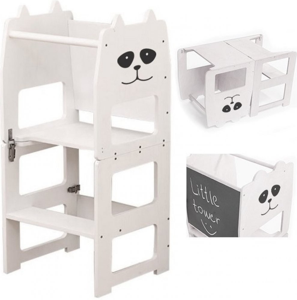 Růst dítěte do výšky rozvíjí vrozenou touhu dítěte být nezávislý a účastnit se po boku svých rodičů a sourozenců okolního dění. Ať už jde o pomoc s přípravou večerních večeří, pečením speciálních prázdninových receptů nebo běžné denní činnosti. Pro děti je svět kouzelné a neprobádané místo. Učí se napodobováním maminky a tatínka s konečným cílem, být schopen „udělat to sám“. Učící věž jim umožňuje cítit se jako aktivní člen rodiny, plně zapojený do procesu učení a tvorby. Konstrukce z masivního dřeva složená z vrstev topolu a břízy činí Učící věž bezpečnou, stabilní a postavenou tak, aby byla užitečná i při postupném růstu dětí. Je potřena bezolovnatým, netoxickým povrchem, který se snadno čistí vlhkým hadříkem. Klíčové vlastnosti Tuktuk Dětské učící věže 3v1 s kreslící tabulí (bílá)Víceúčelová - učící věž, dětský stůl se židlí, tabule na kresleníVyrobena podle principů učení Montessori - pomoz mi, abych to zvládl sámVysoká odolnostNosnost až 50 kgVíceúčelové použitíUčící věž je víceúčelová....