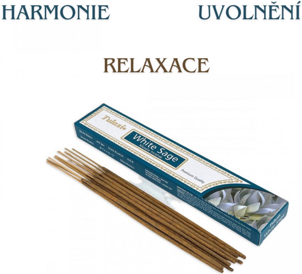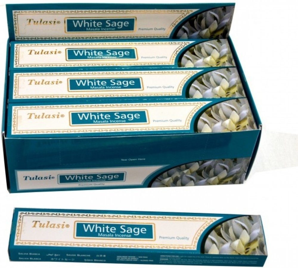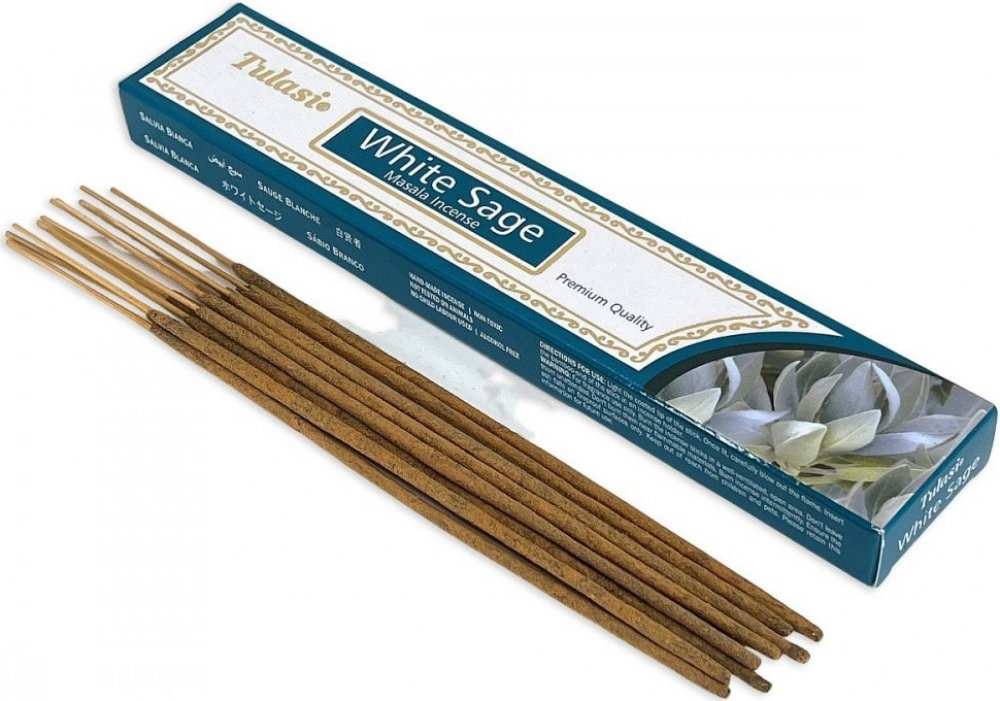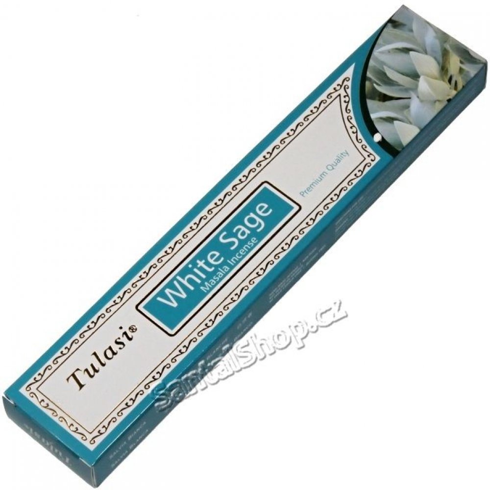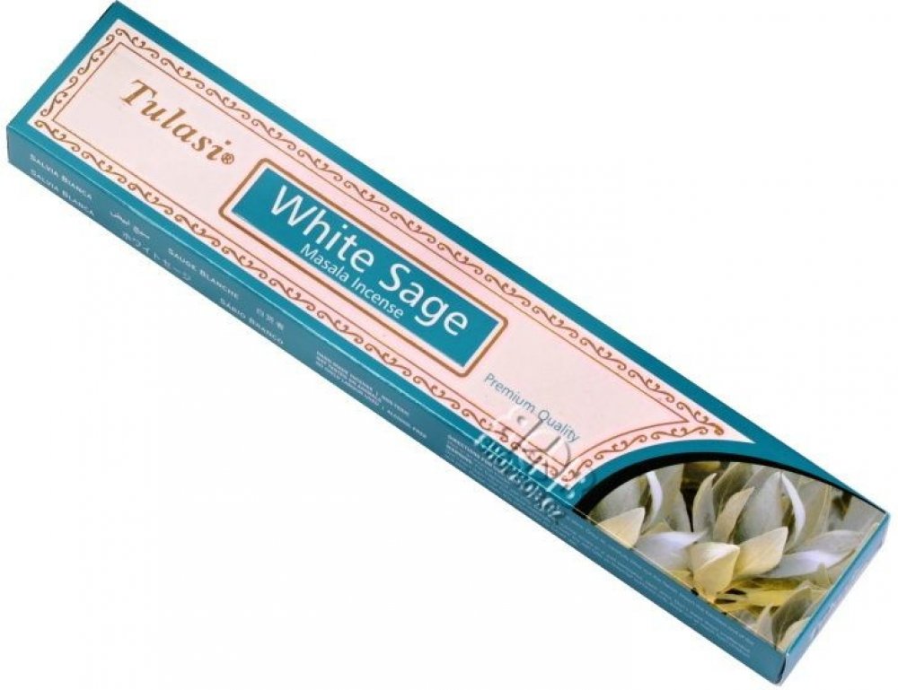 Kvalitní indické vonné tyčinky Tulasi Masala White Sage s květinovou vůní posvátné bílé šalvěje vám dodají pozitivní energii. Prémiová kvalita řady Tulasi Masala Incense s vysokým podílem přírodních příměsí a esencí zaručuje příjemný požitek z originálních vonných tyčinek.