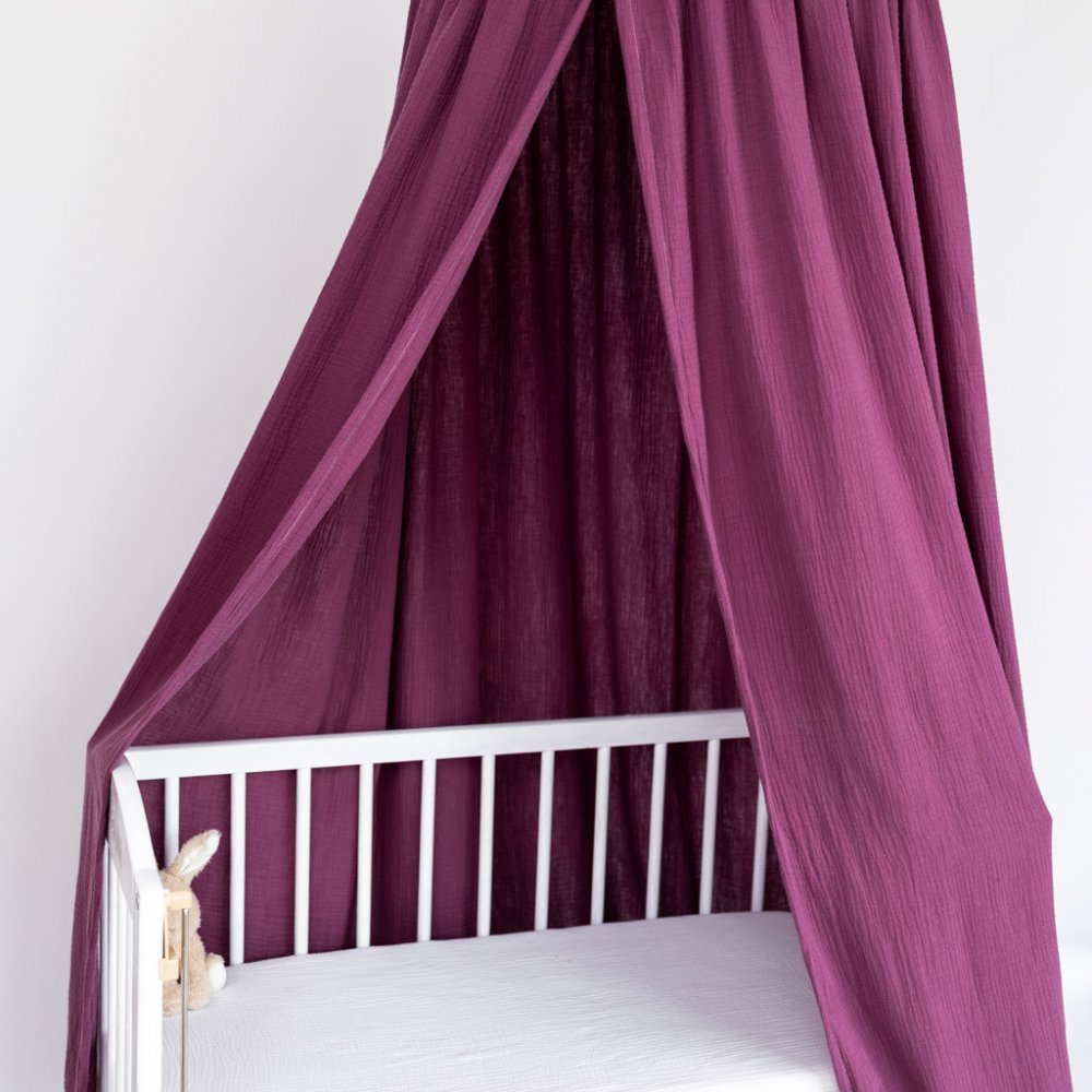 Mušelínový baldachýn je skvělý doplněk každé dětské postýlky. Nejde jen o designový prvek, jde o příjemné a nerušené prostředí pro klidný spánek. Zajistí pocit bezpečí a jistoty kolem hlavičky miminka. Omezí okolní světlo, hluk i případný průvan. Baldachýn lze zavěsit na strop nebo na pomocný kovový stojan. Baldachýn lze následně použít k vytvoření malého doupěte v dětském koutku nebo na zahradě.