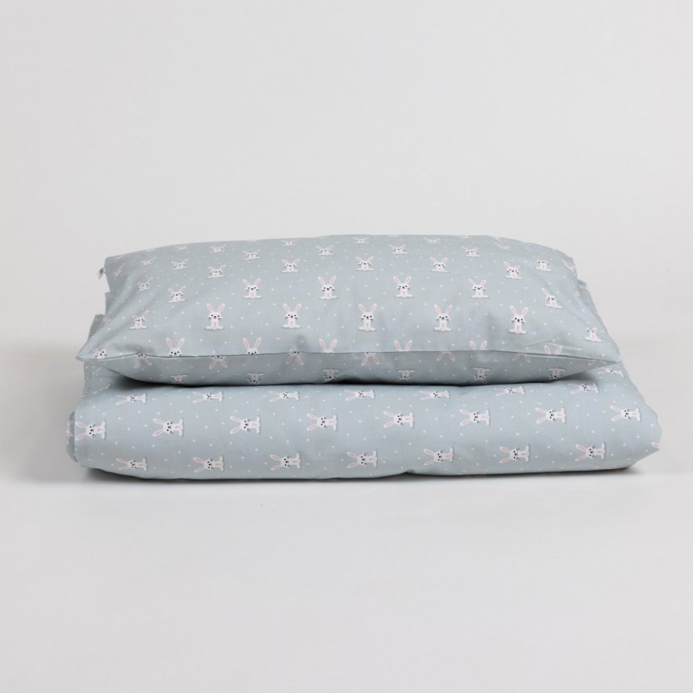 - Povlečení je celé v dekoru s králíčky.