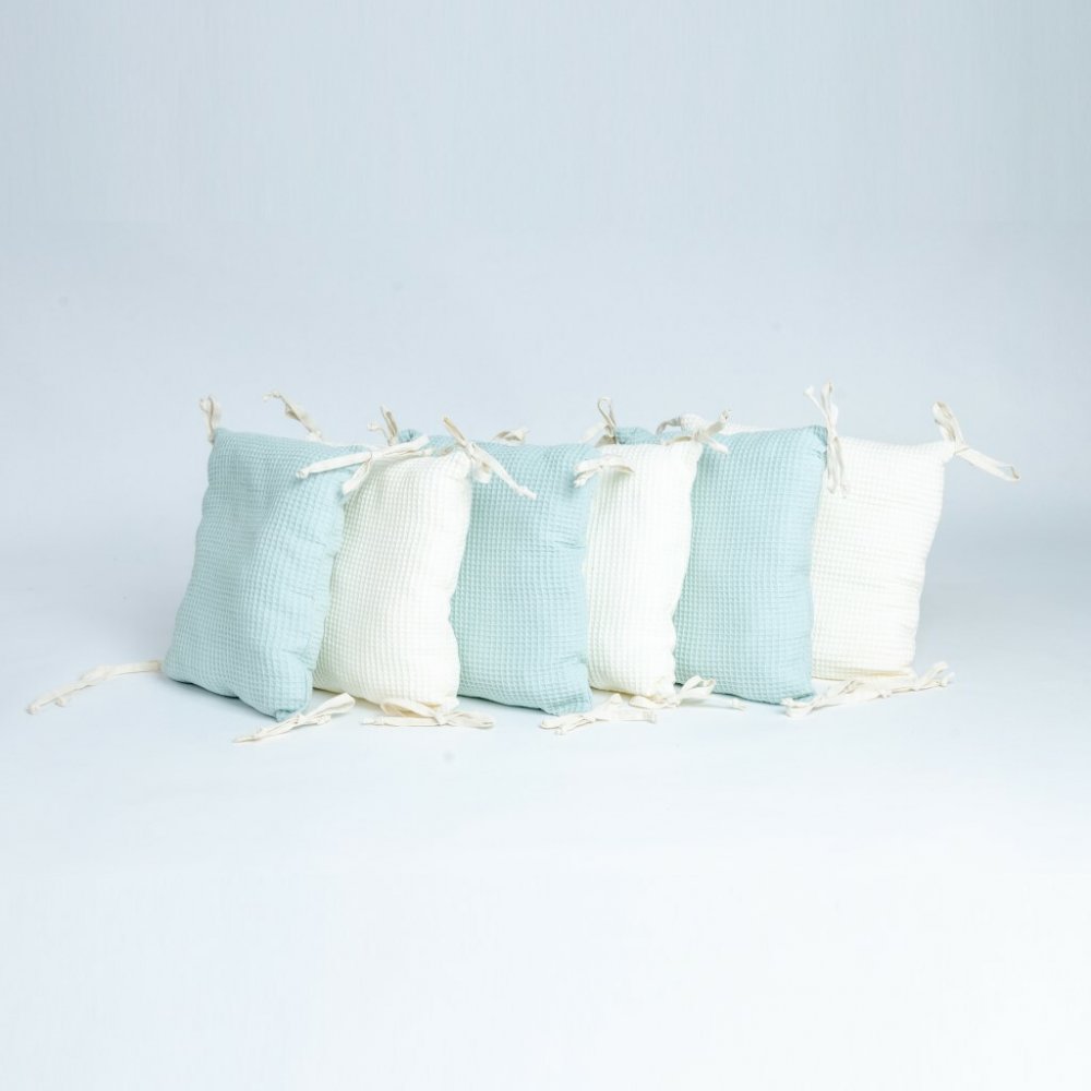 Tulimese Polštářkový mantinel do postýlky mentolový smetanový vaflový 6KS