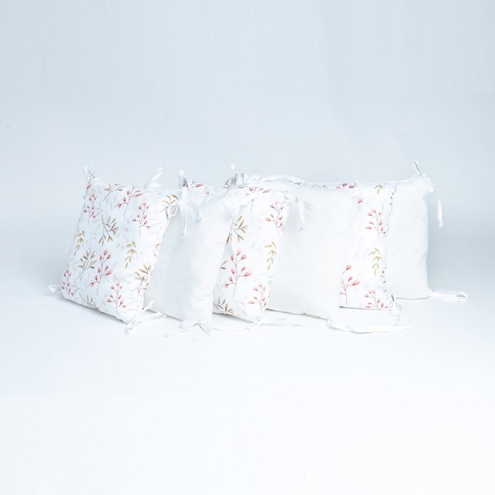 Tulimese Polštářkový mantinel do postýlky růžové lístečky bílý 8KS