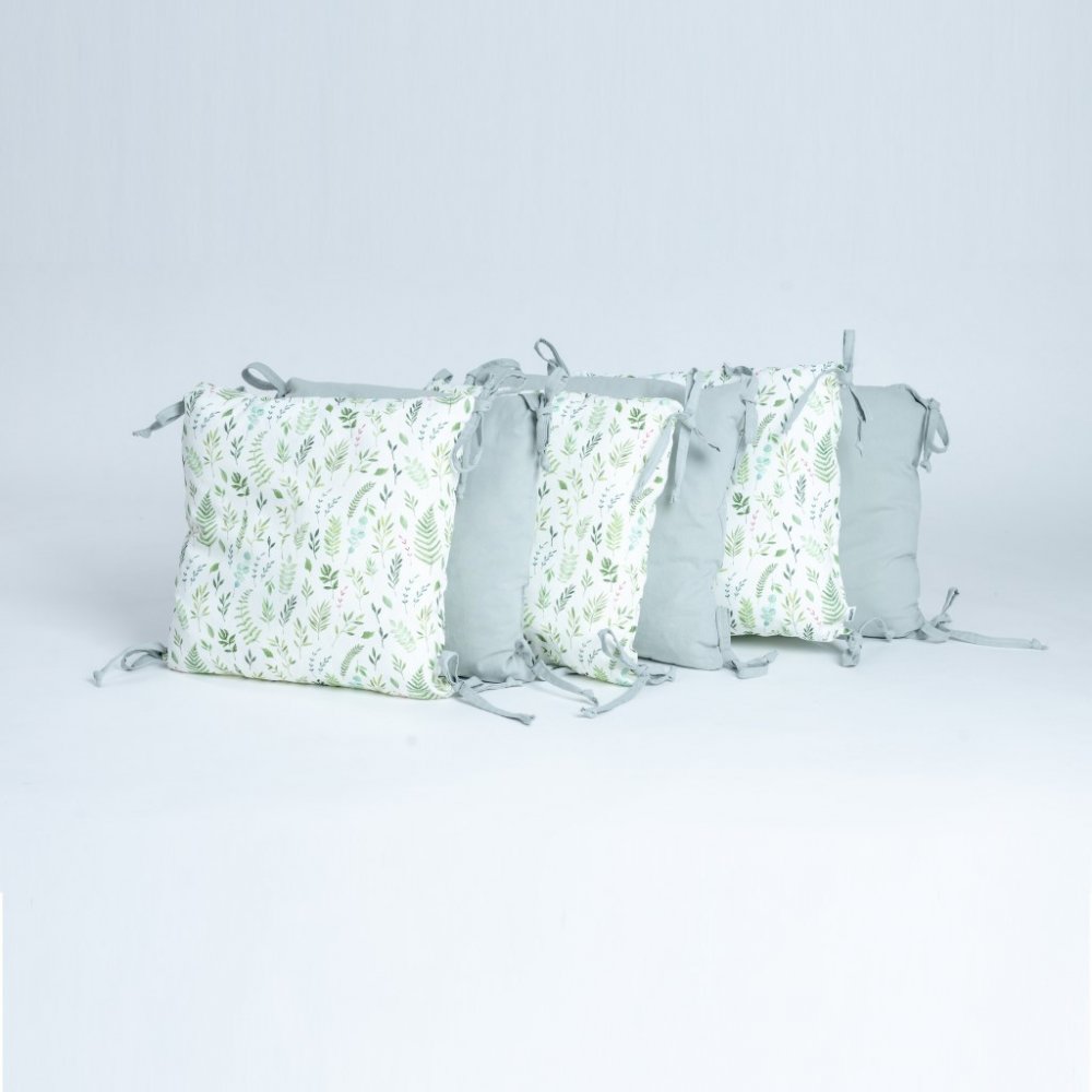 Tulimese Polštářkový mantinel do postýlky svěží kapradiny šedozelený 6KS