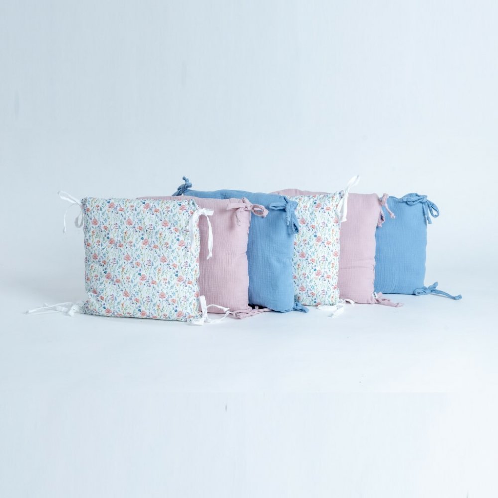 - Polštářkový mantinel je součástí barevně sladěné sady výrobků pro miminko SADA VLČÍ MÁK a SADA JEDNOBAREVNÁ MUŠELÍNOVÁ.