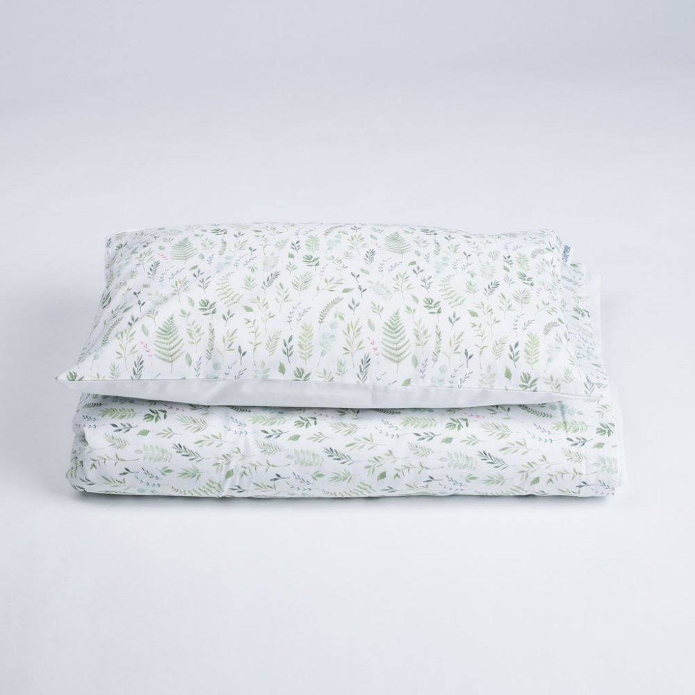 - Povlečení je oboustranné: na povlaku bude z jedné strany dekor kapradin a z druhé jednobarevná bílá. Můžete tak libovolně otáček povlaky a měnit barevný vzhled povlečení.