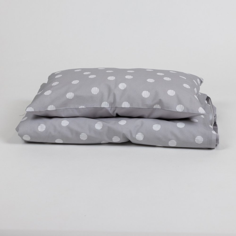 - Povlečení je oboustranné: na povlaku bude z jedné strany dekor s klubíčky a z druhé jednobarevná šedá. Můžete tak libovolně otáček povlaky a měnit barevný vzhled povlečení.