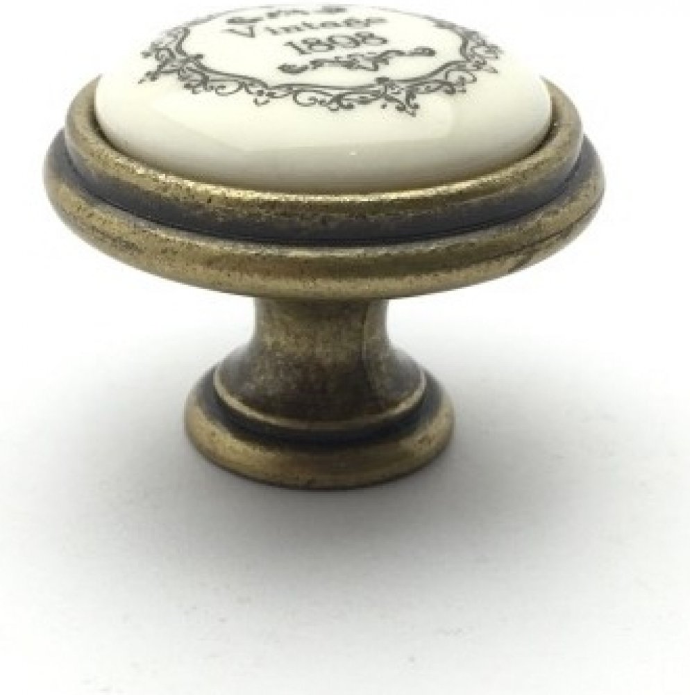 Nábytková knopka VINTAGE staromosaz/ krémový porcelán s motivem