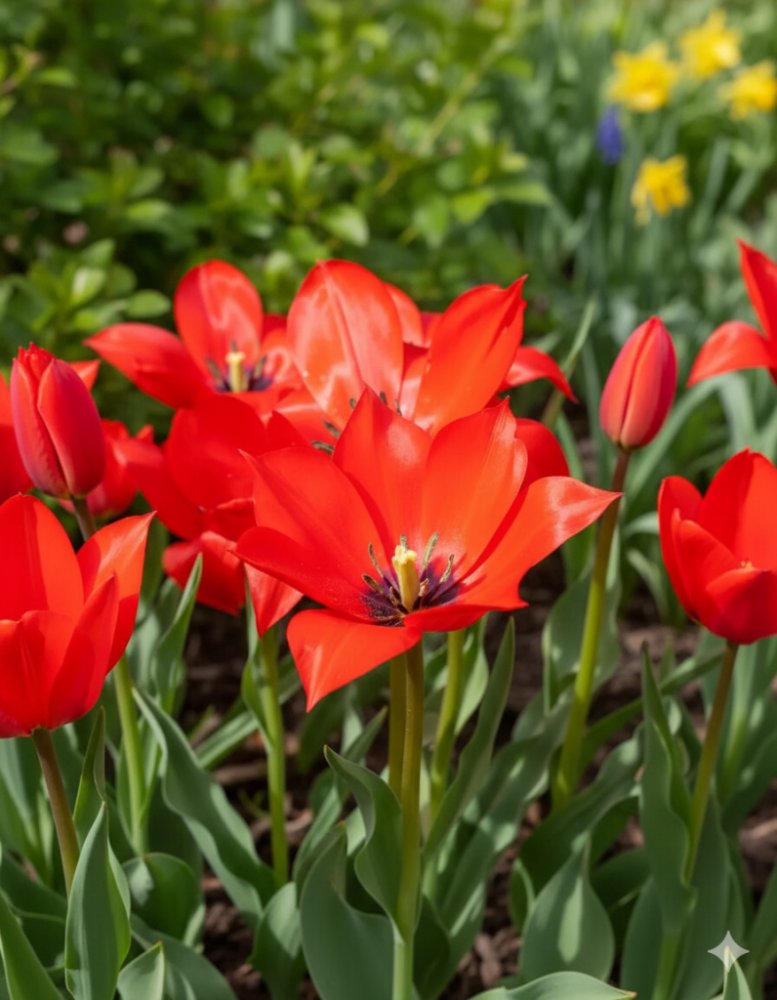 Tulipán 'Linifolia' (Tulipa linifolia) je nízký botanický tulipán, ideální pro výsadbu do skalek, okrajů záhonů nebo menších nádob. Dorůstá výšky kolem 20–25 cm a jeho sytě červené květy se zvýrazněným středem kvetou od dubna do května. Díky svému kompaktnímu růstu a intenzivní barvě je nepřehlédnutelným prvkem jarní zahrady.
