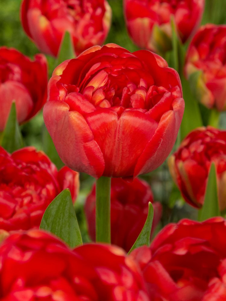 Miranda je velkokvětý kultivar tulipánu s ohnivě rudými plnými květy, které mají až 10 cm v průměru. Kvete později než jiné odrůdy, až koncem jara.