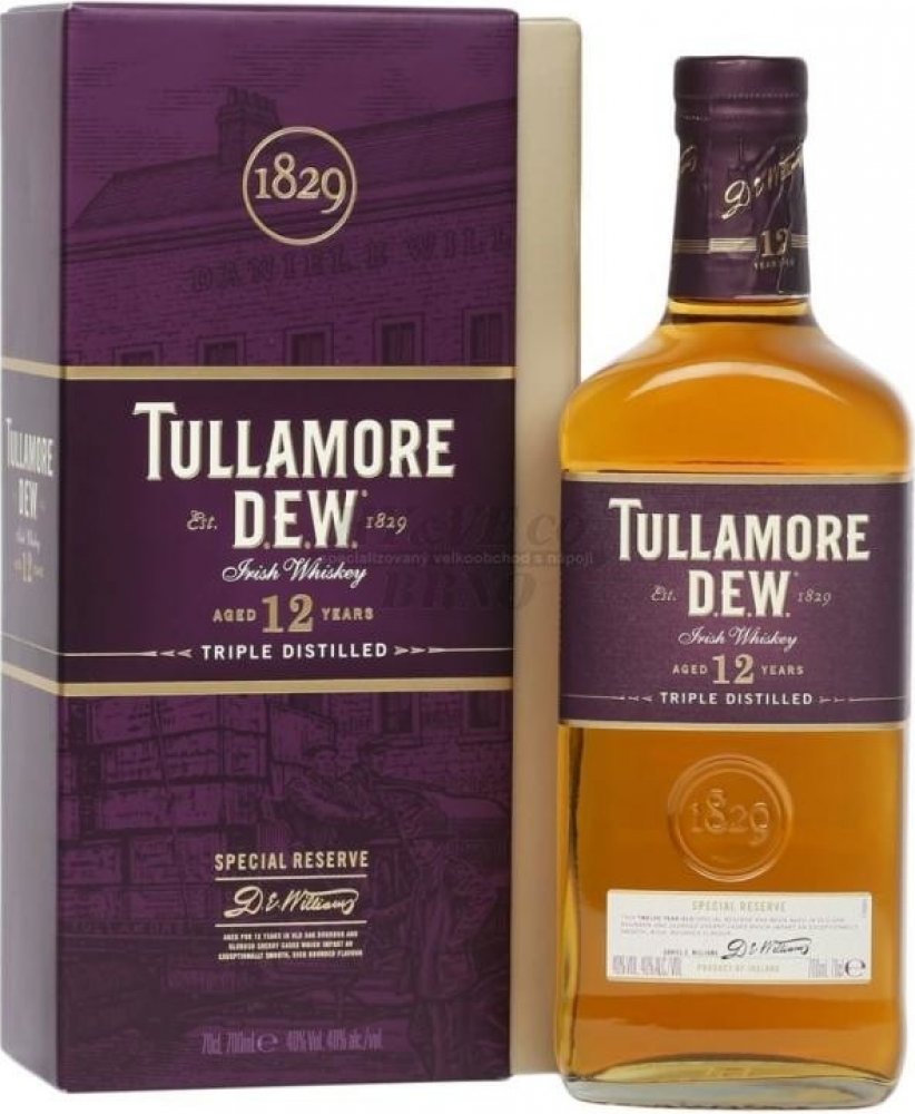 Tato 12letá exkluzivní whisky má plnější barvu, chuť s náznakem vanilky, pečiva s oříšky a datlí. Díky trojnásobné destilaci získává svoji výjimečně jemnou chuť. Její složky zrají v dubových sudech po dobu nejméně dvanácti let. Dlouhá léta zrání dávají whisky ještě vyzrálejší chuť. Tullamore Dew je pravá irská whiskey která nabízí velmi příjemnou, lehkou až éterickou vůni s ovocnými a dřevitými tó...