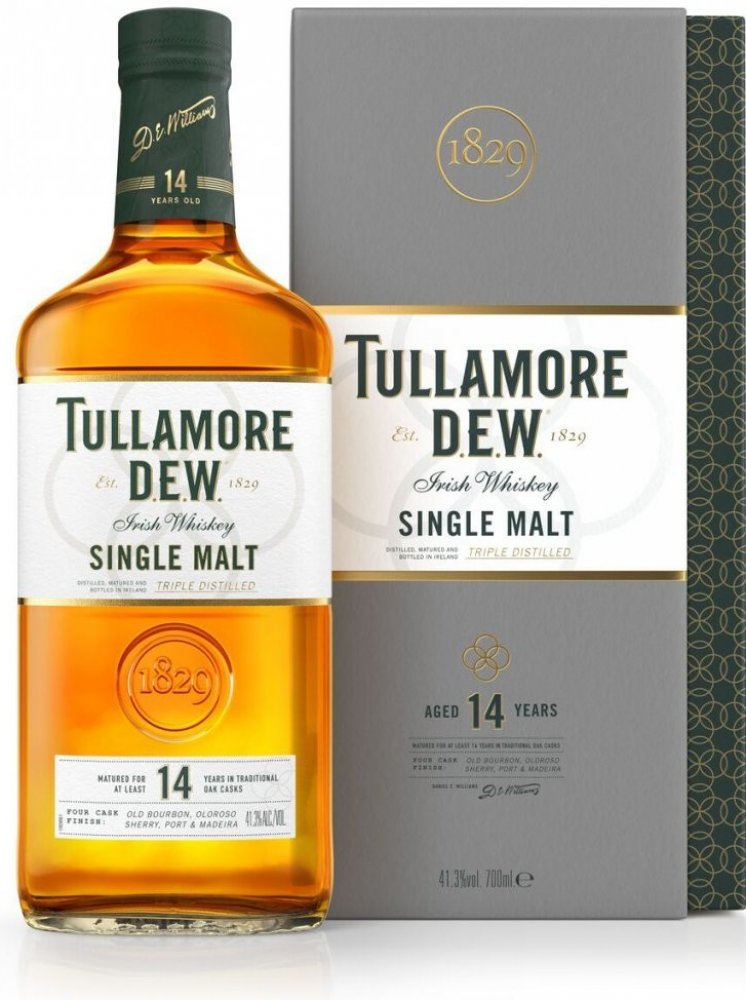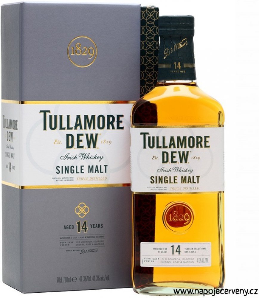 Single malt whiskey Tullamore Dew 14 Year Old pochází z Irska, od značky Tullamore D.E.W. Jedná se o trojnásobně destilovanou whiskey, která zraje 14 let, převážně v sudech po bourbonu, a nakonec prochází speciálním finišem ve čtyřech typech sudů.