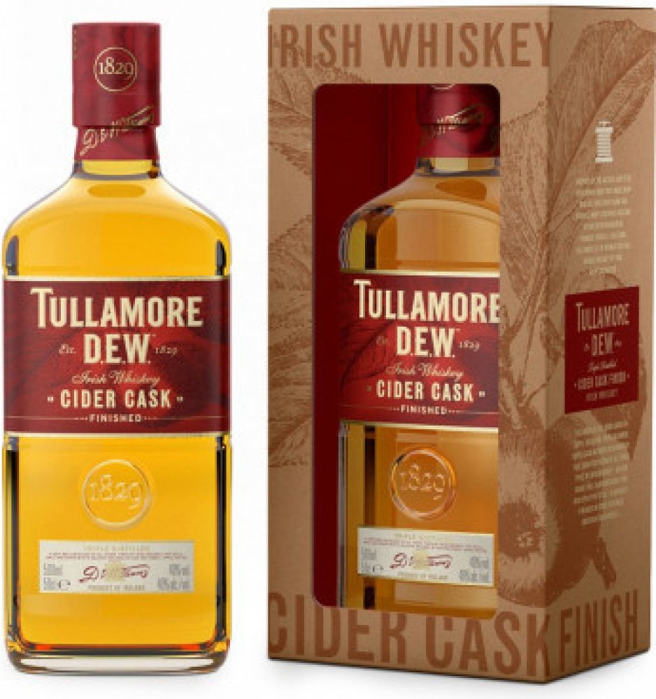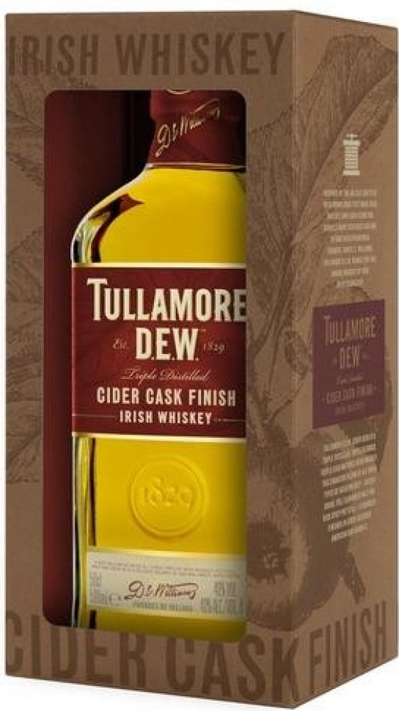 Tullamore D.E.W. Cider Cask Finished Irish whiskey se vyrábí pouze v době sklizně jablek v Irsku (od září do listopadu). Nejkvalitnější jablka, ještě čerstvá, se lisují a to je začátek procesu, při kterém z nich se po malých dávkách vyrábí cider. Vylisovaná šťáva se několik měsíců uchovává v dubových sudech. Jak cider fermentuje, kyselé a zároveň sladké tóny prostupují sudy na bourbon a vytvářejí složité vrstvy vůní a chutí, které se bohatě vyplácejí. Master Blender pak odsaje všechen fermentovaný cider a na další tři měsíce ho nahradí drahocennou Tullamore D.E.W. Výsledkem je výjimečná a ušlechtilá irská whiskey, pravá esence Irska s tóny vypáleného dubu stříknutými sladkým ciderem, která zaujme a potěší vytříbený jazyk skutečných milovníků irské whiskey.