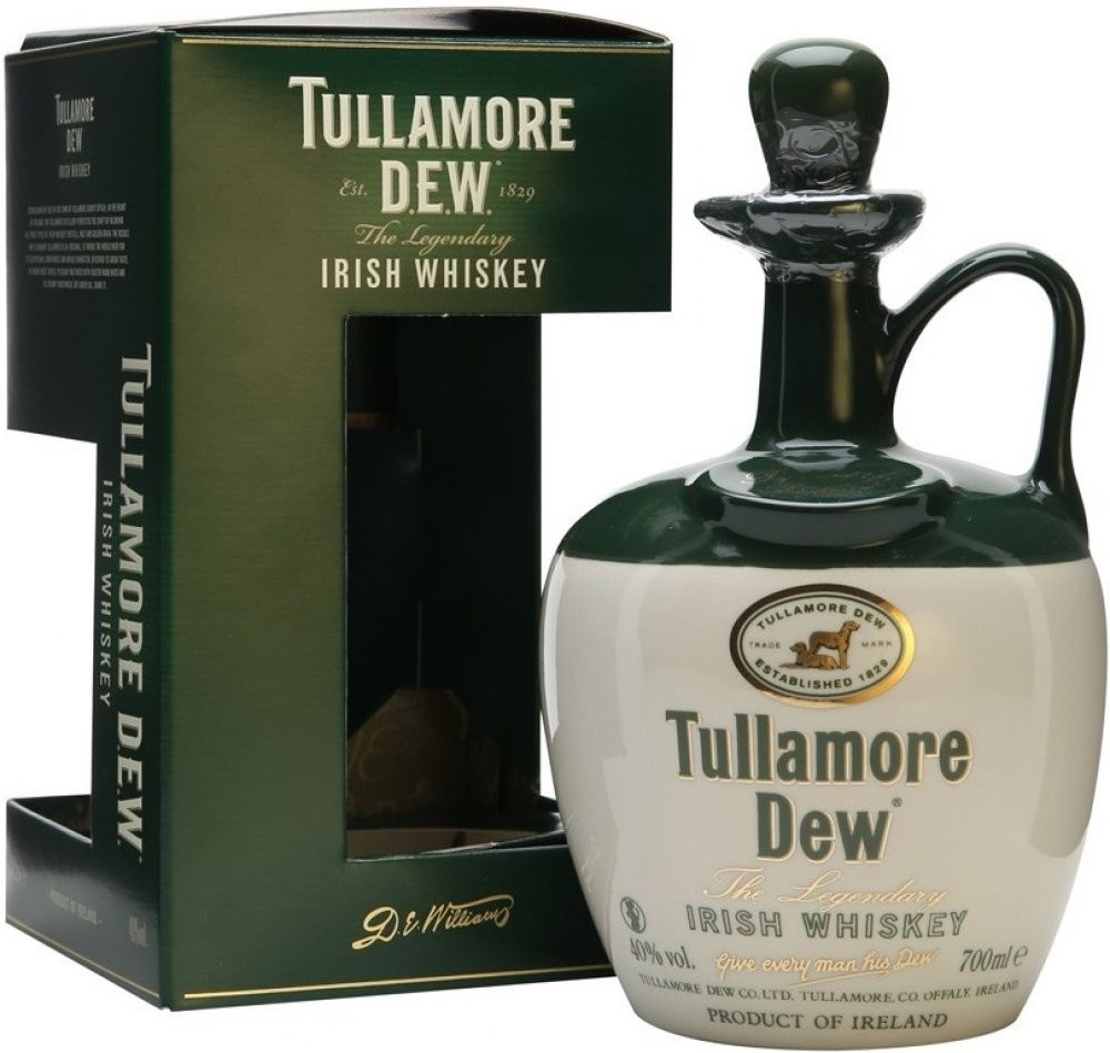 Tullamore Dew vyniká chutí sladu, hořké čokolády a dřeva. Postrádá typický kouřový znak skotských whisky, neboť ječmen není sušen kouřem, ale jen teplým vzduchem. Zraje nejméně pět let. Distilerie Tullamore Dew založená v roce 1829 se nachází v Midlands v Irsku a její jméno z původního Tulach Mhor - Velký kopec - bylo později doplněno na dnes známé Tullamore Dew podle počátečních písmen jména ředi...