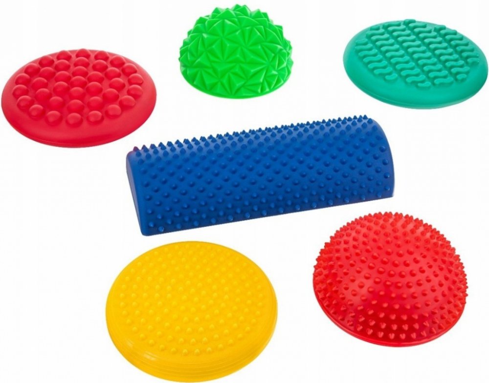 Smyslová dráha je určena pro cvičení rovnováhy, nápravu špatného držení těla a masáž chodidel. Velmi dobře funguje při hře s dětmi, zatraktivňuje skupinové aktivity. Speciální kónické hroty a výstupky stimulují smyslové receptory a zlepšují krevní oběh.Skvělá zábava pro celou rodinu. Možnost libovolného uspořádání prvků podporuje dětskou kreativitu. Obsahuje 11 prvků, včetně dvě smyslové polokoule...