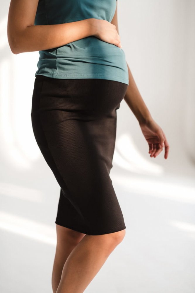 Těhotenská úzká sukně z vroubkované bavlněné látky.