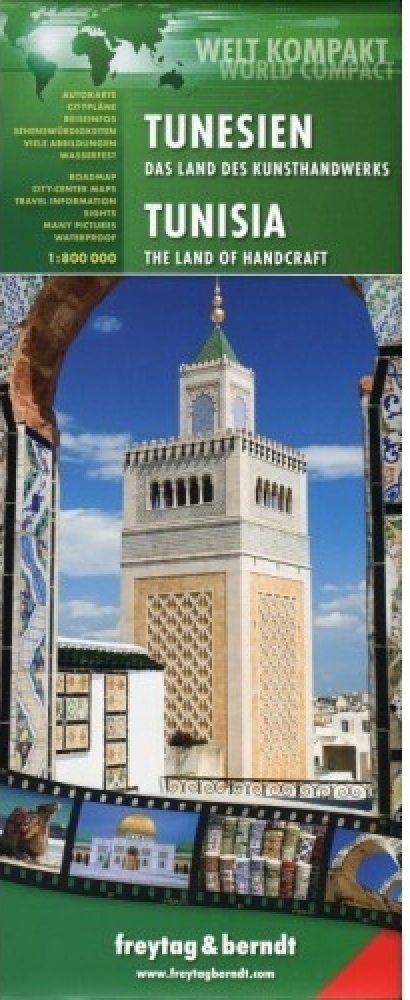 Oboustranná automapa Tuniska s bohatým turistickým obsahem vyrobená z voděodolného materiálu. Základem motoristického obsahu je podrobná silniční síť s kilometráží úseků a číslováním silnic. Do topografického podkladu jsou pomocí jednoduchých symbolů vyznačeny přírodní a kulturní zajímavosti, historické památky, turistické atrakce, možnosti ubytování, památky UNESCO apod. Výškopis je naznačen stín...