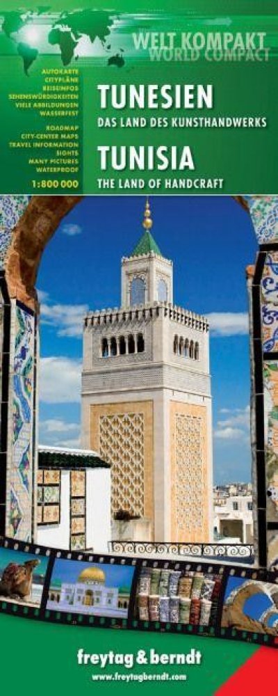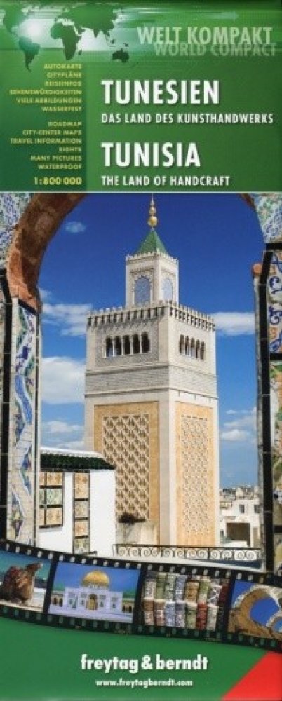 Oboustranná automapa Tuniska s bohatým turistickým obsahem vyrobená z voděodolného materiálu. Základem motoristického obsahu je podrobná silniční síť s kilometráží úseků a číslováním silnic. Do topografického podkladu jsou pomocí jednoduchých symbolů vyznačeny přírodní a kulturní zajímavosti, historické památky, turistické atrakce, možnosti ubytování, památky UNESCO apod. Výškopis je naznačen stínováním reliéfu, který navíc mapě dodává plastický vzhled. Na automapu nezvykle vysoký počet turistických informací zapsaných v jednotlivých boxech na okraji mapy. Součástí mapy je i slovník základních frází (EN, DE) a plány dvou velkých tuniských měst (Tunis, Sousse). Mapa tedy slouží i částečně jako turistický průvodce a je tedy velmi vhodná k procestování této země. Rejstřík míst, barevné fotografie. Vydání: Z důvodu časté aktualizace map Vám dotaz na rok vydání rádi zodpovíme telefonicky či emailem. Děkujeme za pochopení.