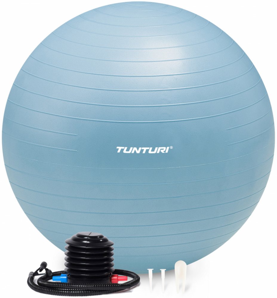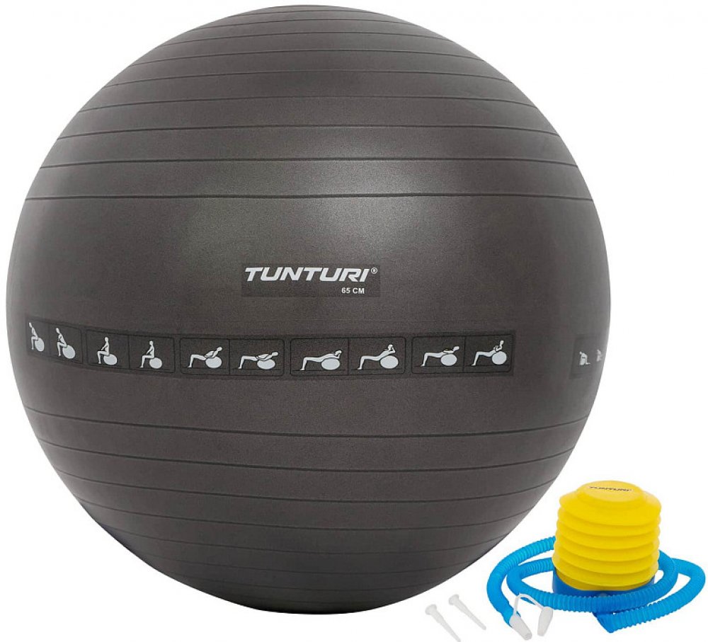 Gymnastický míč TUNTURI s pumpičkou je vhodný k šetrnému procvičení kloubů celého těla, posiluje břišní, stehenní a zádové svalstvo, pomáhá při svalových nerovnováhách. Slouží k procvičování stability, správného držení těla a k relaxaci. Zlepšuje ohebnost, vyváženost a držení těla; tonizuje svalstvo celého těla a zvyšuje fyzickou kondici; ideální pro prevenci a minimalizace bolesti dolní části zad.