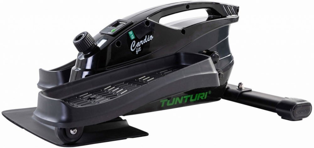 Komfort a plynulost při šlapání zajišťuje setrvačník o hmotnosti 5 kg a ergonomicky tvarované pedály. Odpor lze nastavit pomocí otočného regulátoru, který se dotahuje nebo povoluje dle potřeb uživatele. Tunturi Cardio Fit D10 Minieliptical disponuje LCD displejem, který zobrazuje hodnoty, jako je čas, vzdálenost a spálené kalorie.