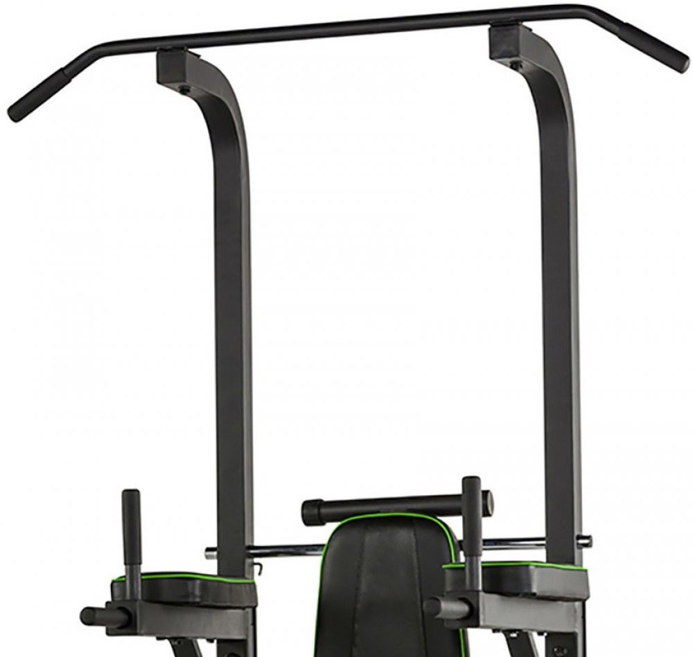 Multifunkční trenažér pro procvičení celého těla s vlastní váhou. Perfektní pomocník pro domácí tělocvičnu s ergonomicky tvarovanou, polstrovanou opěrkou zad a opěrky rukou. Masivní konstrukce s vysokou stabilitou zahrnuje víceúchopovou hrazdu, lavici na bench press a břicho, opěrky rukou, madla na kliky.