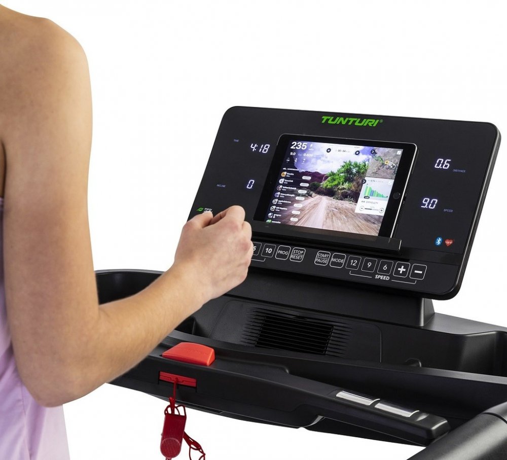 Trenažér TUNTURI T85 Endurance lze navíc, pomocí systému Bluetooth, propojit s tréninkovými aplikacemi Tunturi Routes nebo Kinomap. Díky nim si programovou nabídku rozšíříte o videa a další trasy napříč celým světem. Dneska to může být Grand Canyon a zítra si užijte běh po Paříži. Úhel sklonu se přizpůsobuje automaticky, dle změn nadmořské výšky nastavené tratě.