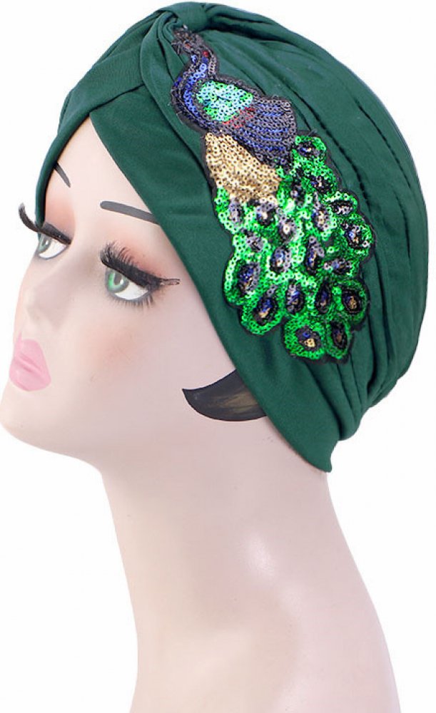 turban na hlavu zelený se vzorem