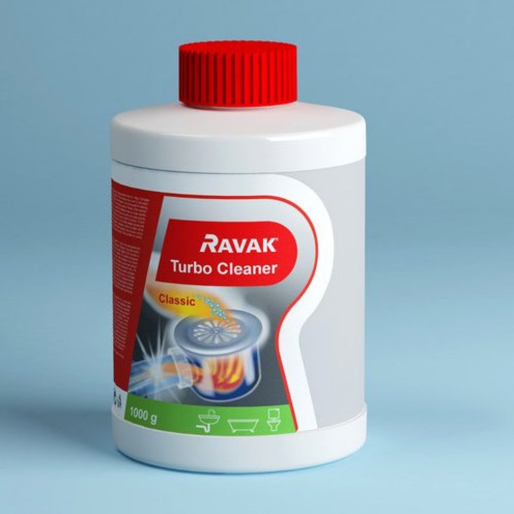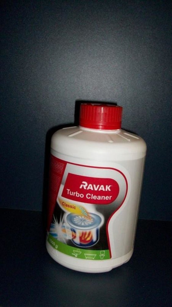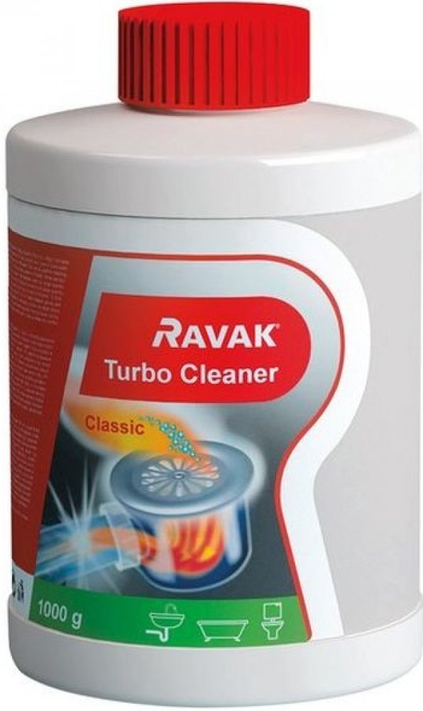 - použití: Do výlevky nasypte 30 – 90 g přípravku, zalijte 0,1 – 0,4 l horké vody (podle množství přípravku), nechte působit nejméně 30 minut a poté propláchněte studenou vodou. Upozornění: Vyvarujte se styku přípravku RAVAK TurboCleaner s pokožkou!
