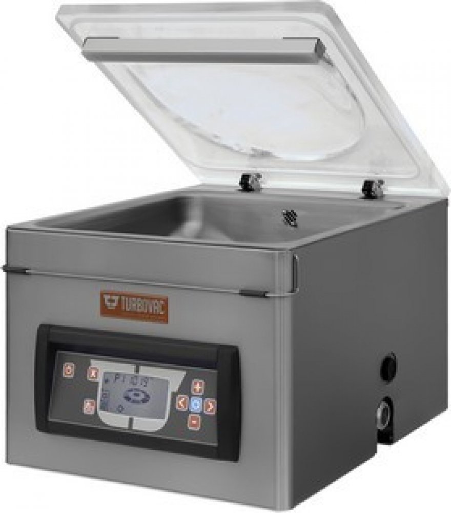- víko vyboulené - vakuová pumpa Busch - vakuová komora a stroj jsou vyrobeny výhradně z nerezové oceli - digitální časové řízení - 1 program - dvojitý svár - systém svařování jediným drátem - program pro údržbu vývěvy - kontrola vakua pomocí vakuometru - ohřev pumpy řízen programem (prohřev pumpy před vakuováním) - dvojitý svár