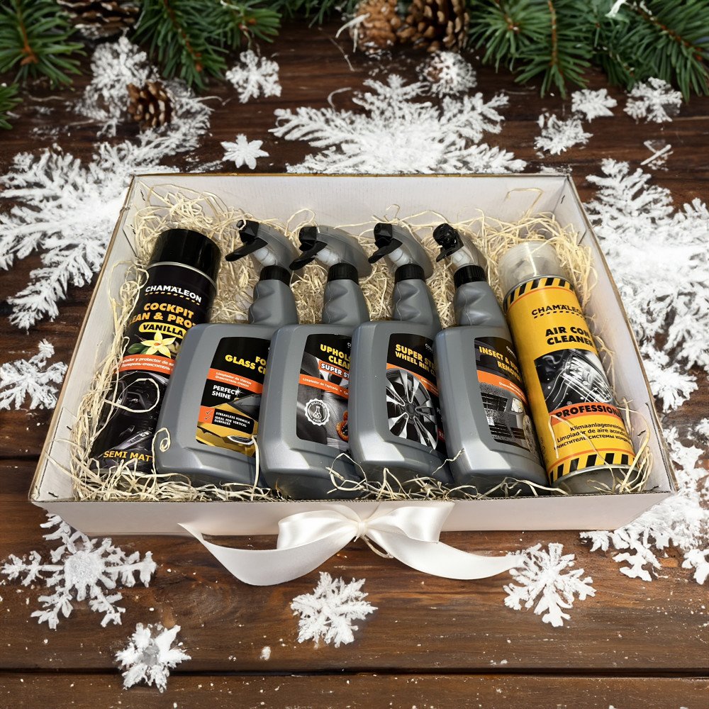 Čistič a ochrana palubní desky - 0,5LČistí, chrání a zkrášluje palubní desku a další plastové díly v autě. Zanechává příjemnou vůni vanilky nebo citrónu.Pěnový čistič skel - 0,65LUniverzální složení pro automobilová skla, zrcátka a světlomety. Odstraňuje špínu, prach a bláto. Zanechává povrch bez šmouh. Odstraňuje nečistoty a omezuje srážení vlhkosti na oknechautomobilů. Ideální pro vertikální povrchy. Nestéká, odstraňuje odolné nečistoty a hmyz, nezanechává šmouhy.Čistič čalounění - 0,65LSilný mycí prostředek na čištění čalounění. Účinné při odstraňování nečistot a skvrn hluboko v látce. Dokáže, že sedačky, potahy, vinyl, čalounění a koberce vypadají jako nové. Zaručuje dokonalé čištění atd. V případě jediné skvrny lze použít jako odstraňovač skvrn. Nepoužívejte na kožené povrchy. Odstraňuje odolné skvrny, čistí a renovuje čalounění, neutralizuje nepříjemné pachy.Čistič na disky kol - 0,65LSuper silný čistič na disky kol je účinná čisticí kapalina s "krvácejícím efektem" na ráfky, která reaguje se silnými nečistotami. Odstraňuje zatěžující nečistoty ze všech typů ráfků: ocelových, hliníkových, chromových a lakovaných. Díky této přípravě se mytí špinavých ráfků stává rychlým a efektivním, bez rizika poškrábání. Krvácející efekt, obnovuje původní vzhled, odstraňuje veškeré nečistoty.Odstraňovač hmyzu - 0,65LOdstraňovač skvrn od hmyzu. Přípravek pro péči o exteriér – všechny typy vozidel/organický čistič skvrn na skleněné a lakované povrchy, pro nárazníky a pod.Čistič klimatizace - 0,5LÚčinná čistící pěna klimatizace pro všechny vozy. Jemně voní, desinfikuje, optimalizuje fungování klimatizace a poskytuje trvalou prevenci proti pachům a poruchám.
