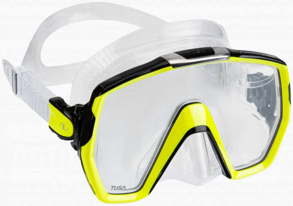 Díky kvalitnímu silikonu skvěle přilne k obličeji a sedí téměř každému. Široké jednozorníkové provedení nabízí extrémní výhled na všechny strany. Maska Freedom HD má stejně jako další masky od výrobce TUSA zpěvněný rámeček nerezovými prvky a je tak odolnější vůči nárazu a poškození.