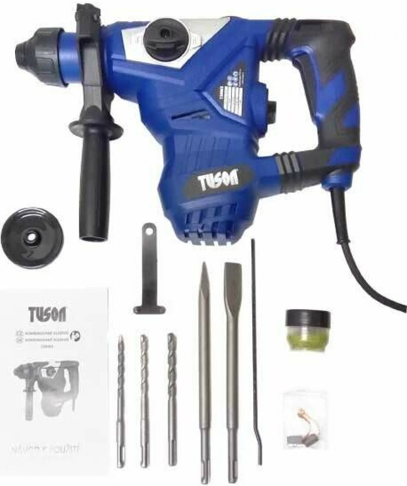 Vrtací kladivo elektrické 230 V, příkon 1500 W, sklíčidlo typu SDS+, v sadě s vrtáky, sekáči a příslušenstvím v plastovém kufru – TUSON 130063