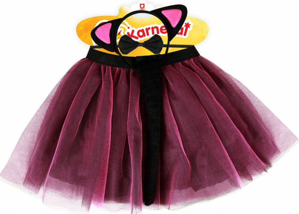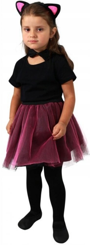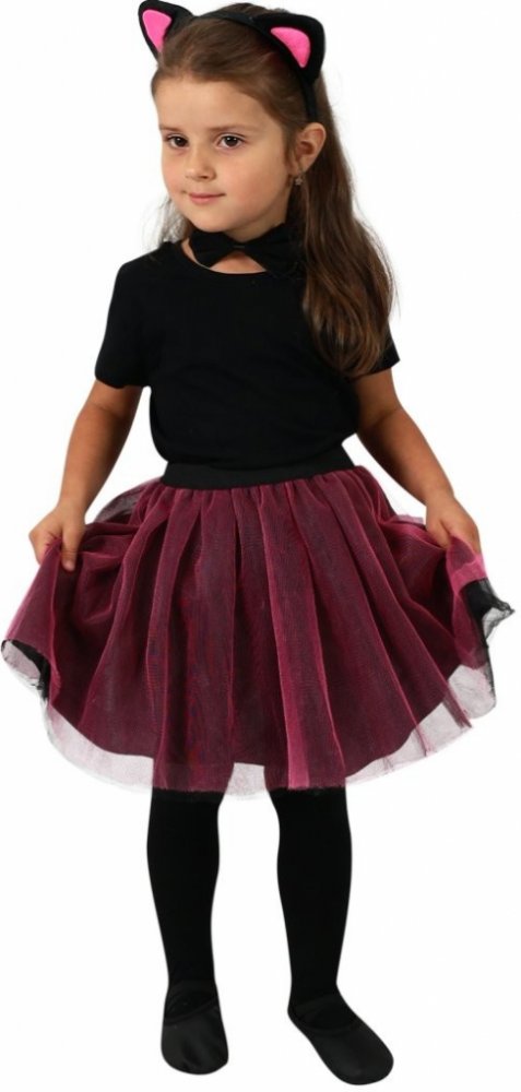 Roztomilý karnevalový kostým s motivem kočky. Kostýmek v černo-růžové barvě je určen pro holčičky ve věkovém rozmezí 3-7 let. Balení obsahuje sukýnku, čelenku s oušky, ocásek a motýlka na krk.