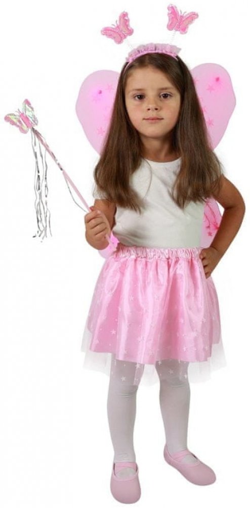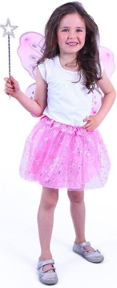 Krásná vílí sada pro malé holčičky! Sada obsahuje křídla se stříbrným zdobením, růžovou TUTU sukýnku se saténovým lemem a stříbrným potiskem hvězd a měsíčků. Celý set doplňuje vílí kouzelnická hůlka. Sukně je dlouhá cca 25 cm a je vhodná pro obvod pasu 44-72 cm. Upozornění ! V případě, že u zboží svítí skladem v externím skladu - je zboží mezi 3 - 7prac. dny. Děkujeme za pochopení. DĚTSKÝ RŮŽOVÝ KOSTÝM TUTU S KŘÍDLY A PRETIČKOU Krásná pohádková souprava pro malé holčičky. Souprava obsahuje křídla se stříbrným lemováním, růžovou sukni TUTU se saténovým lemováním a stříbrným potiskem hvězdiček a měsíčků. Celá souprava je doplněna kouzelnou hůlkou. Sukně je dlouhá přibližně 25 cm a je vhodná pro obvod pasu 44-72 cm. parametry