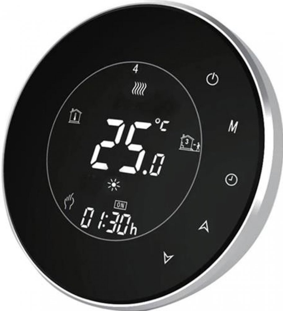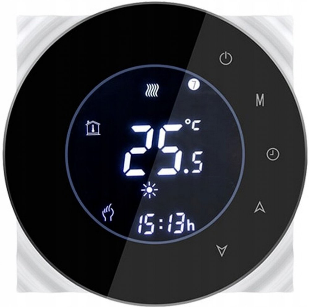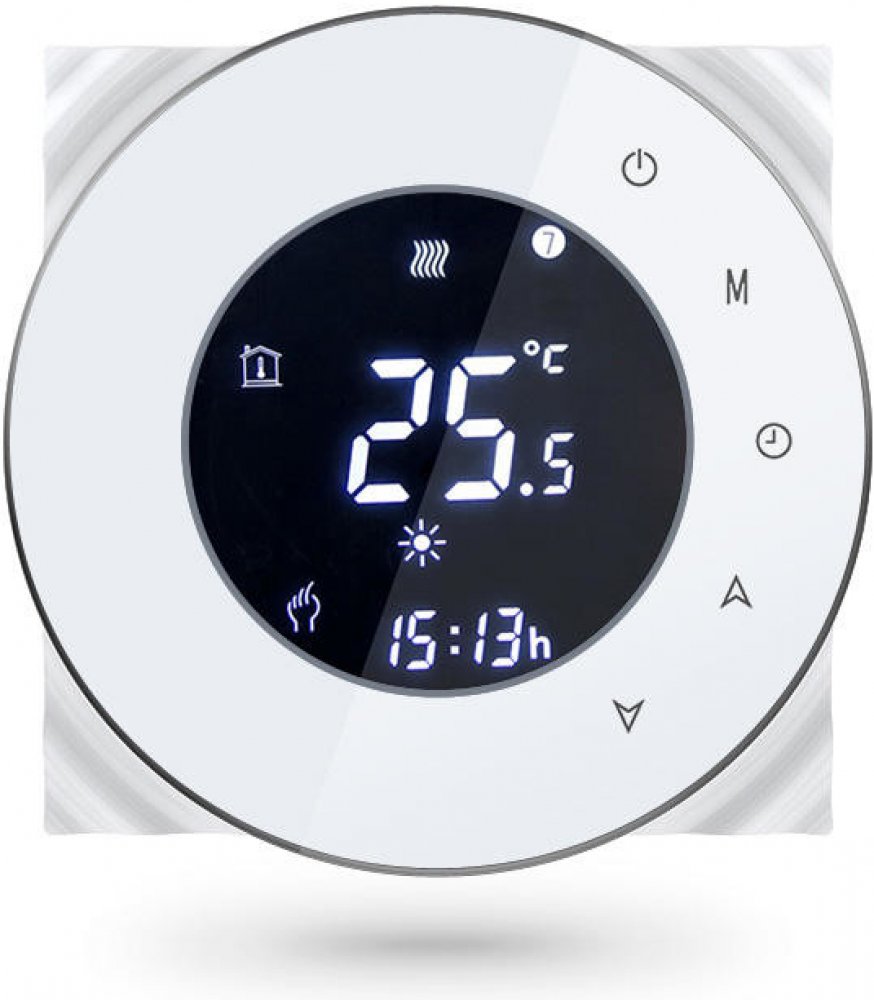 Smart termostat MOES je pokojový termostat, který slouží k regulaci pokojové teploty na základě nastaveného programu nebo nastaveného topného režimu. Termostat je vybaven bezdrátovým připojením Wi-Fi 802.11 b/g/n v pásmu 2.4 GHz. Díky tomu snadno integrujete systém do domácího prostředí a s internetovým připojením získáte přístup k ovládání odkudkoli. K připojení termostatu do Wifi sítě není třeba zásahu do síťových prvků. Termostat využívá dnes již běžné technologie vzdáleného serveru, přes který dokáže komunikovat s telefonem i mimo vaší Wifi síť. Termostat má napěťový výstup 230V a maximál