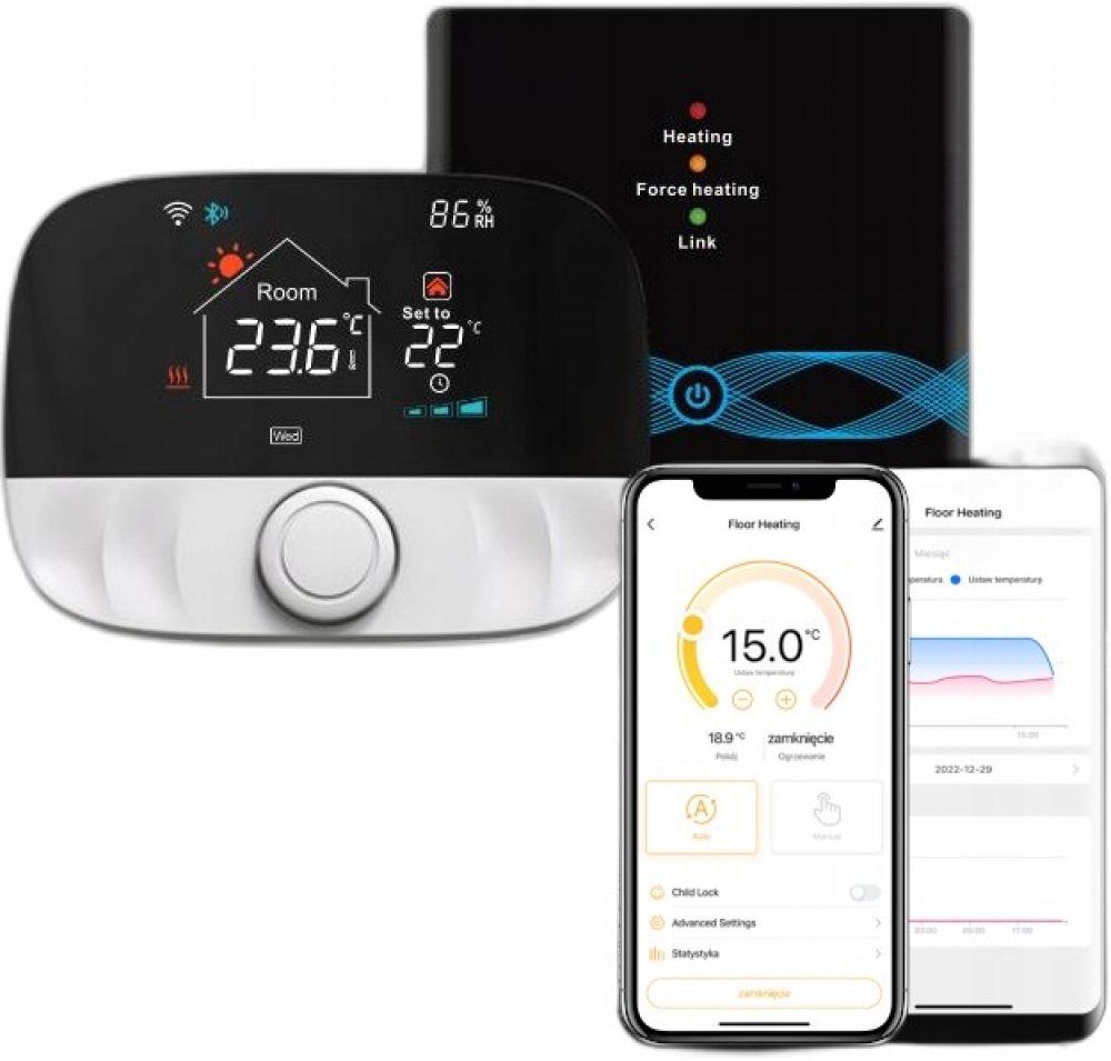 - ✅ Možnost dálkového ovládání nastavení teploty umožňuje rychlé přizpůsobení klimatu v domě i daleko od něj. To umožňuje vyhnout se zbytečné spotřebě energie, když není potřeba udržovat optimální teplotu.