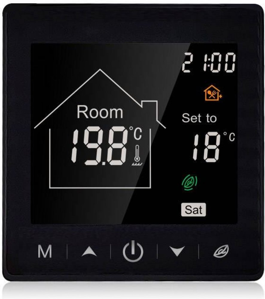 WiFi termostat pro vytápění domácností a automatizaci budov.Tato verze pro mimořádně oblíbenou aplikaci TUYA SMART!Model s krásnou estetickou obrazovkouHlavní přednosti:Má přesný vestavěný teplotní senzorPamatuje si poslední stav a nastavení po výpadku napájeníOvládání pomocí dotykových tlačítek a bezplatné aplikace pro IOS nebo Android.Spolupracuje s Google Home a Amazon AlexaMožnost připojení externího čidla k vyhřívané podlaze na kabelu NTC3950, 10 k (je součástí dodávky)Estetický, moderní design.Vhodný do standardních polských krabic pro zapuštěnou montážMožnost naprogramování na 7 dní v týdnu se 6 směnami v režimech 5/2, 6/1 nebo 7/0.Možnost sdílet ovládání prostřednictvím aplikace s více uživateli.Připojení k domácí Wifi, Můžete ovládat z libovolného místa na světě. Termostat nevyžaduje žádné brány ani žádné pevné IP adresy nebo přesměrování portů.Má možnost automatizace na základě funkce vytápění. - Topí / Netopí To znamená, že je možné přidat externí relé, které bude zapínat wi vypínat podle stavu topení termostatu.Díky svému modernímu a zároveň elegantnímu designu termostaty dokonale zapadnou do vašeho okolí a jistě upoutají pozornost vašich hostů!Chytrá domácnost ve vašich rukou!Zařízení spolupracuje s aplikací Tuya Smart - nejoblíbenější aplikací pro zařízení IoT (internet věcí)integrace více než 11 000 různých zařízení30 kategorií (ovládání, klimatizace, monitorování atd.)10000 výrobců chytrých zařízenídenně vyvíjen s novými funkcemi a podporovanými zařízenímik dispozici zdarma pro systémy Android a iOSpřeloženo do polštiny.Inteligentní domácnost ve vašich rukou!Ovládejte aplikaci z libovolného místa na světěOvládání hlasem pomocí Google Home nebo Amazon AlexaOvládání pomocí vestavěného dotykového paneluNastavte v aplikaci pokročilé scénáře provedení s dalšími senzory a zařízeními kompatibilními s aplikací TUYA (příklad automatizace níže - Při otevření okna vypnout termostat a zastavit vytápění)Široká škála pokročilých možností v aplikaci!Termostat má vestavěný snímač teploty vzduchu a možnost připojení externího snímače teploty podlahy.Může pracovat pouze s čidlem teploty vzduchu nebo pouze s podlahovým čidlem, případně se dvěma čidly současně, přičemž podlahové čidlo je pak čidlem chránícím systém před přehřátím (dvě čidla se používají u podlahového vytápění, zejména u dřevěných obkladů).Ovládejte vytápění z libovolného místa.Když jste na cestách, změňte plán rozvrhu tak, abyste udržovali nízkou teplotu, a několik hodin před návratem vytápějte dům na odpovídající teplotu.Programovatelný termostatNabízený model s funkcí termostatu a ovládáním prostřednictvím aplikace WiFi má plně programovatelné rozhraní. Můžete nastavit plán zapnutí na sedm dní v týdnu, až šest změn cyklu za den. Teplotní cykly můžete snadno upravit podle svých potřeb. Ovládání termostatu ještě nikdy nebylo tak snadné. Stačí změnit parametry v aplikaci v telefonu, ať jste kdekoli.Moderní designEsteticky příjemný displej upoutá pozornost, nabízený digitální termostat má elegantní a moderní design. Všechny jeho funkce jsou snadno přístupné a ovladatelné prostřednictvím intuitivního uživatelského rozhraní z aplikace nebo dotykových tlačítek na panelu. Díky svému modernímu designu dokonale zapadne do všech domácích nebo kancelářských interiérů.Úspora energiePomocí přednastaveného režimu termostatu můžete plně optimalizovat vytápění své domácnosti. Nastavte plán tak, aby zohledňoval snížení teploty v noci a v době, kdy nikdo není doma. Pokud potřebujete provést úpravy, můžete je vždy rychle provést změnou parametrů v aplikaci v telefonu. Změny můžete provádět z libovolného místa s přístupem k internetu. Správným naprogramováním rozvrhu si můžete být jisti, že neplýtváte penězi na vytápění prázdného domu.Termostat má možnost automatizace na základě funkce vytápění - topí/netopí. To znamená, že je možné přidat externí relé, které bude spínat nebo vypínat podle stavu vytápění termostatu.Technické specifikace:Napájení: 90-240 AC 50/60 HzSnímač: NTC(10k) 1 %Možnost připojení externího podlahového čidla NTC10K (je součástí dodávky)Maximální zatížení: 16 A/250 VOkolní teplota: 1,5 °C -5~50°CRozsah teplotní konfigurace: 5~95°CTeplota podlahy: 20~90°CRozměry: 86 x 86 x 43,9 mmPoužití: Tuya SmartSoučástí dodávky:součástí balení: 1x WiFi termostat2x montážní šrouby1x externí čidlo NTC10K 2,5 m1x kompletní návod v polštiněKód produktu: TR058C