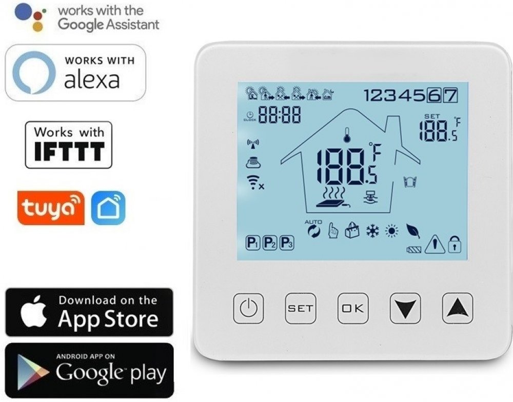 AS-HY08WE-4 = Chytrý pokojový termostat sloužící ke kontrole vytápění v domě pomocí chytrého telefonu nebo tabletu z jakéhokoliv místa díky chytré aplikaci, ovládání pomocí iOS, Android zařízení, týdenní rozvrh, nastavení teploty interiéru v rozpětí 5 až 35 °C s krokem 0,5 °C, WiFi 802.11 b/g/n, kompatibilní s Google Assistant a Amazon Alexa, snižuje náklady na energii a stopu na životním prostř...