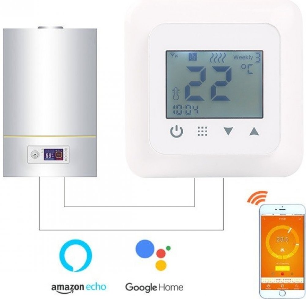 AS-HY518WE= Chytrý pokojový termostat sloužící ke kontrole vytápění v domě pomocí chytrého telefonu nebo tabletu z jakéhokoliv místa díky chytré aplikaci, ovládání pomocí iOS, Android zařízení, týdenní rozvrh, nastavení teploty interiéru v rozpětí 5 až 35 °C s krokem 0,5 °C, WiFi 802.11 b/g/n, kompatibilní s Google Assistant a Amazon Alexa, snižuje náklady na energii a stopu na životním prostředí...
