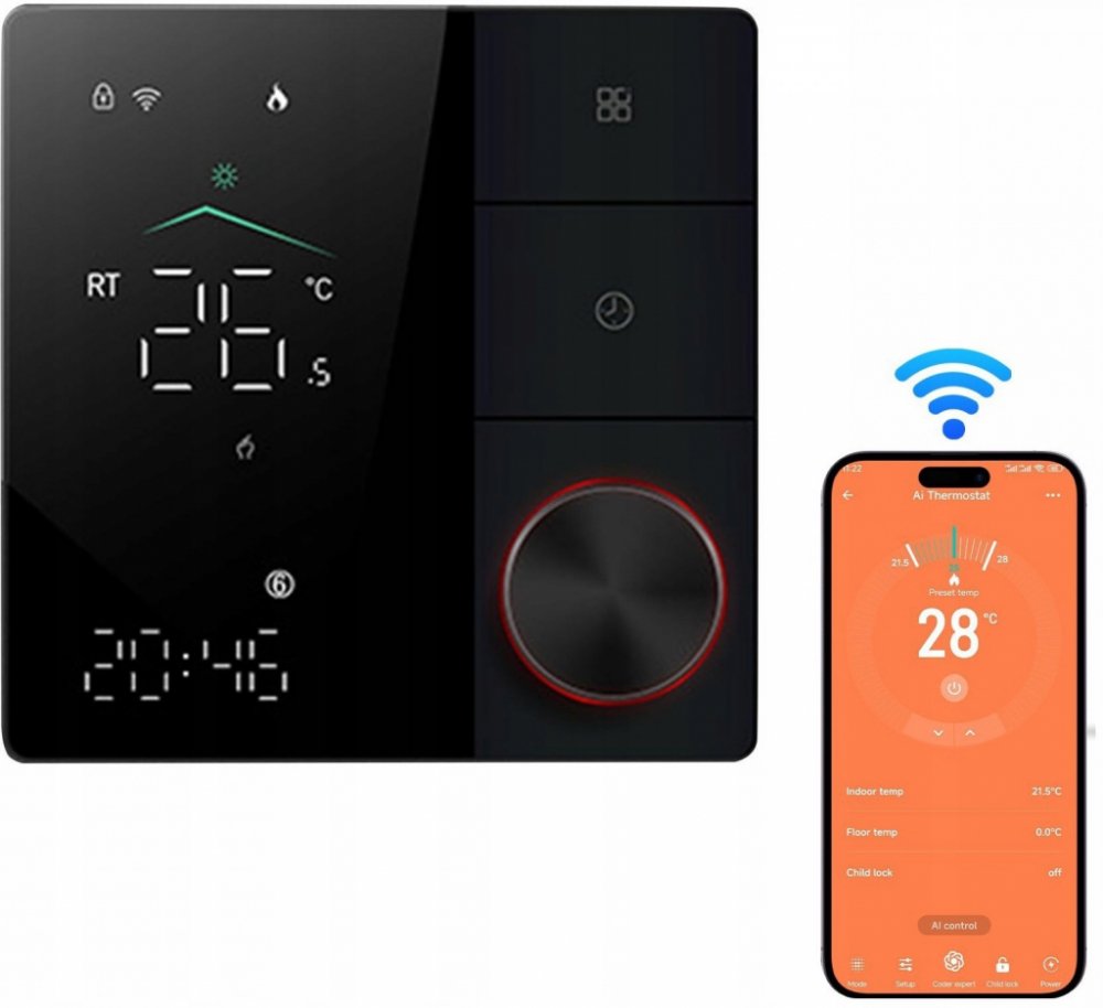 Inteligentní termostat s digitálním displejem a regulátorem teploty Inteligentní termostat s otočným knoflíkem, dálkové ovládání aplikace Podpora Smart Life /ALEXA/GOOGLE HOME