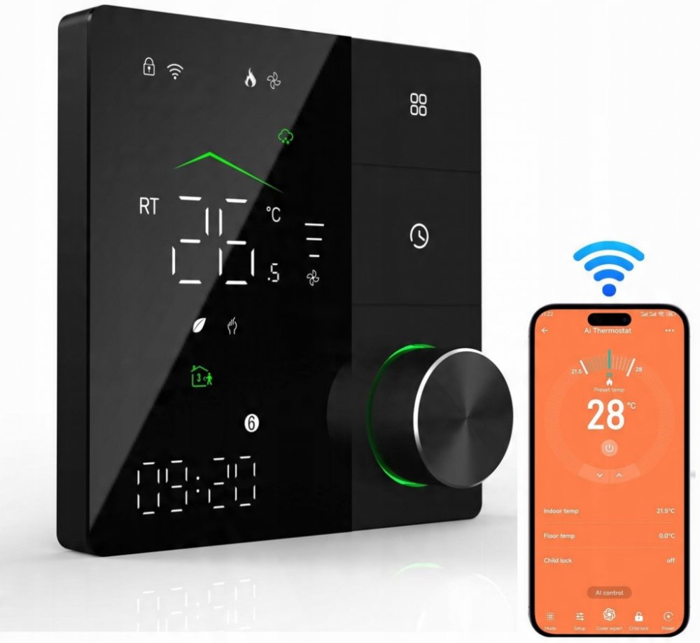1 * inteligentní termostat (pro vodní podlahové vytápění 5A, černý)