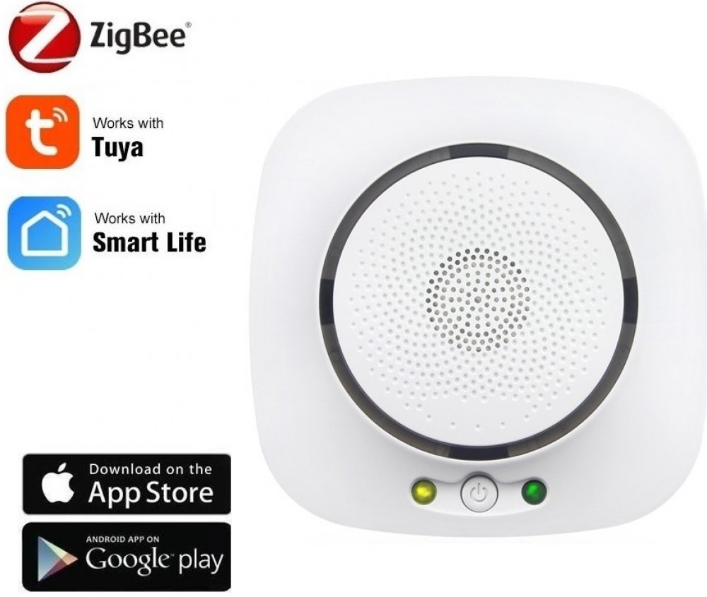 AS-ZB-708 = chytrý detektor oxidu uhelnatého (CO) , hlasitost 75dB, připojení přes protokol Zigbee 3.0, funkce otestování funkčnosti senzoru, notifikace do mobilního telefonu přes aplikaci TUYA, podporované OS: Android/iOS, snadná instalace, napájeno ze sítě 230V pomocí adaptéru (součást balení).
